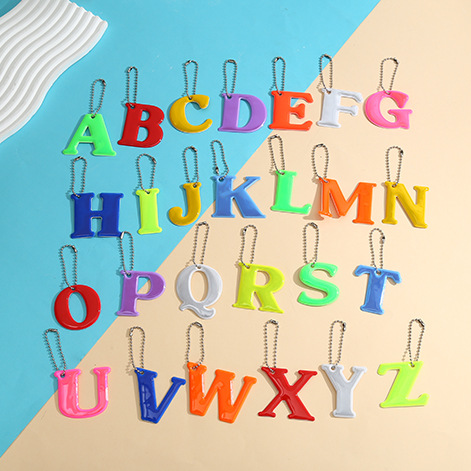 26個の英語のアルファベットの合集の明るい反射の警告のペンダントはリュックサックに乗って夜の標識のキーホルダーを掛けます。