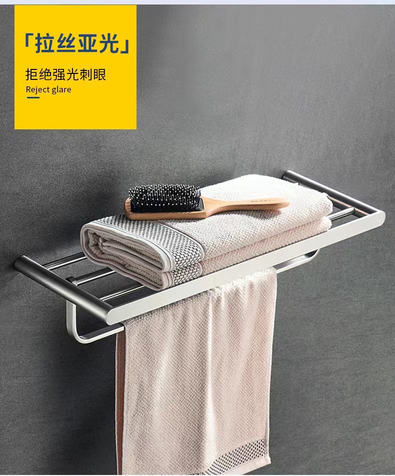 德国哑光拉丝镍304不锈钢毛巾架浴巾架 化妆室置物架浴室五金挂件
