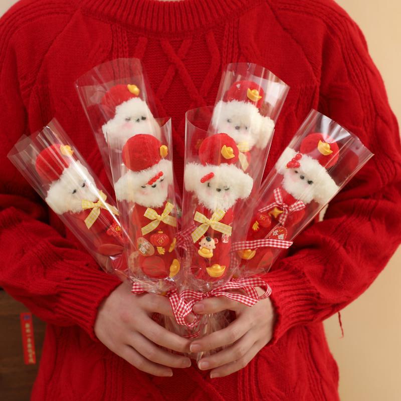 元旦新年毛绒小狗糖葫芦红色伴手礼春节手持装饰摆件桌面礼物布置