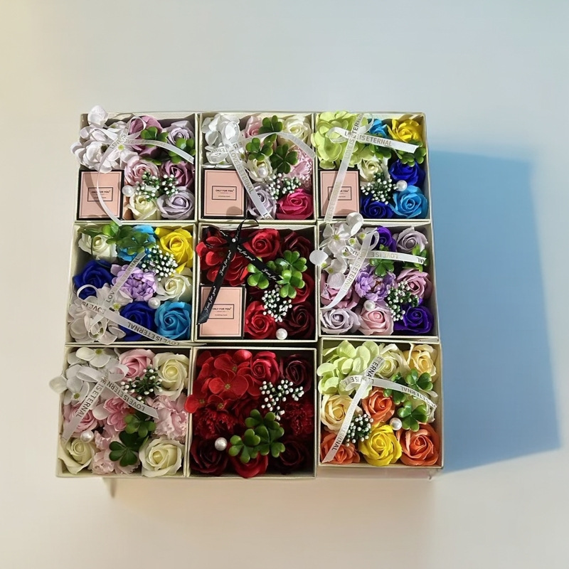 越境メーカーのお土産ギフトボックス、花の香りの石鹸、バラのギフト、誕生日ギフトボックス、高級でロマンチックな