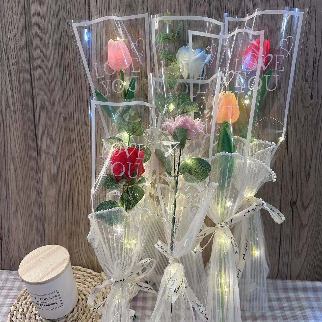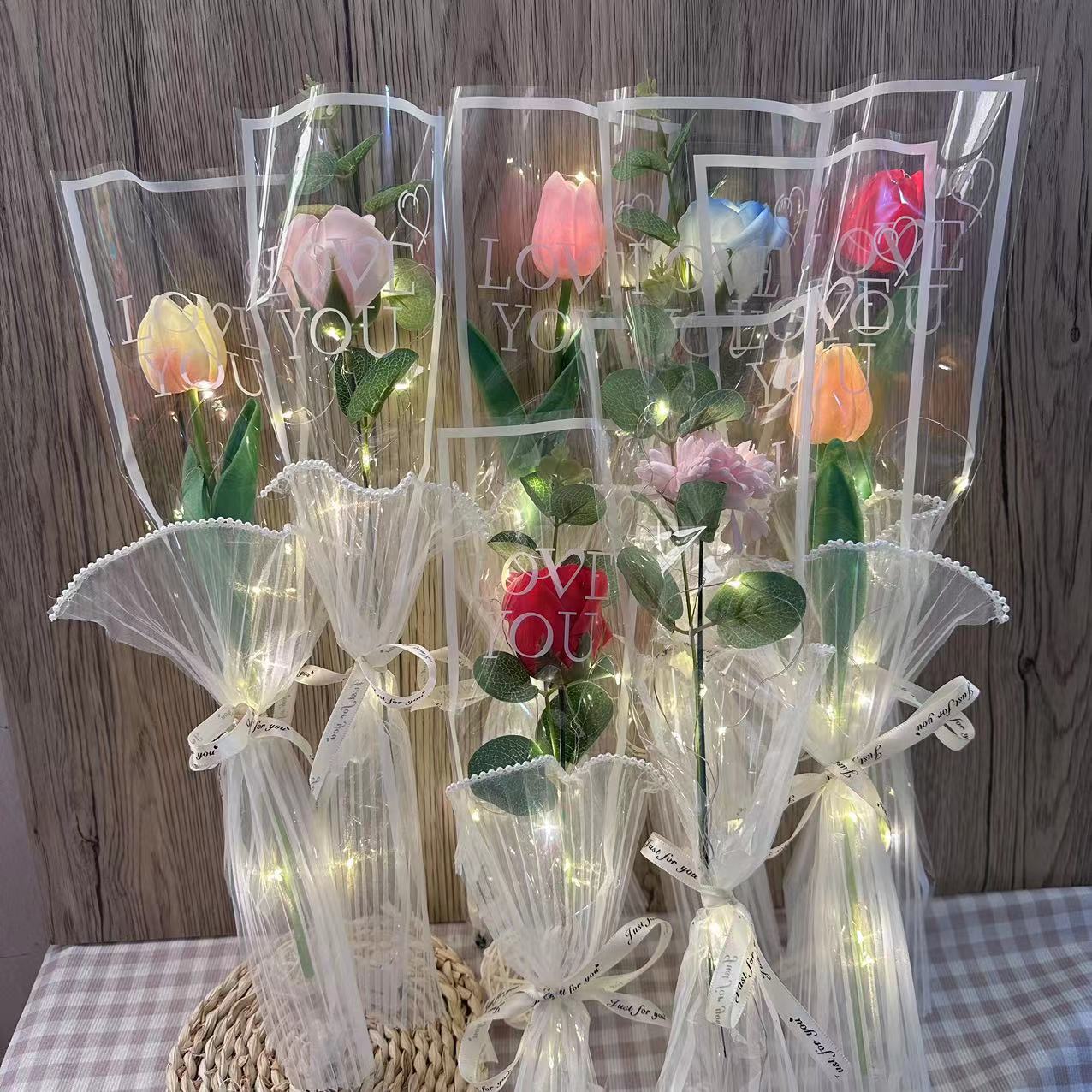 カラー 単一のピンクのチューリップの波の糸のledランプの花束,赤いチューリップの波糸ledランプの花束,シャンパンチューリップ波糸led花束,シングルレッドローズウェーブ糸LEDライトブーケ,砕氷青い波糸ledランプの花束,シングルピンクローズウェーブ糸LEDライトブーケ,単粉康波糸ledランプ花束