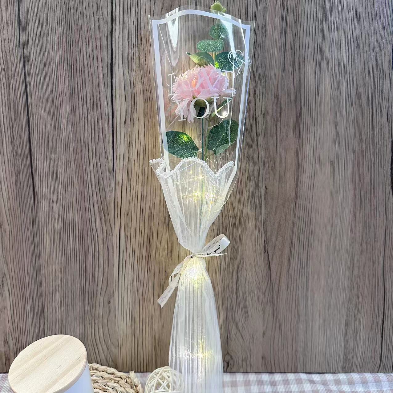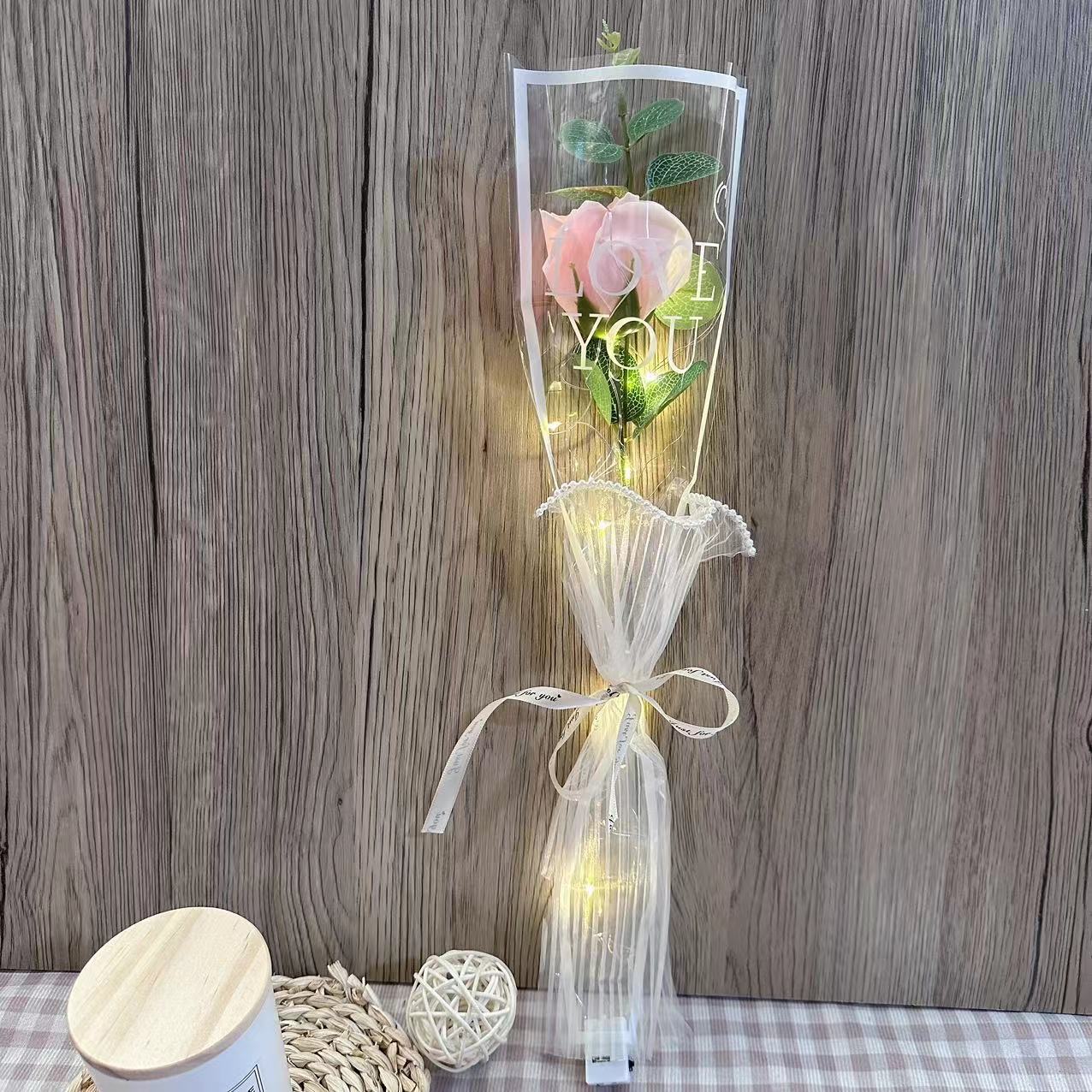 メーカー卸売 跨境販売 単一の花束 透明なバラ バレンタインデー 誕生日の花束 模造LEDライト ビジネス