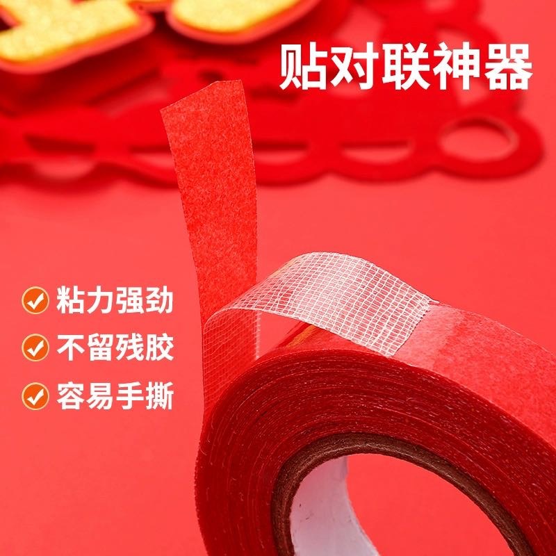 お祝いの赤い春節の春聯用両面テープ、結婚式のカーペット装飾、跡が残らないメッシュ布ベースの両面テープ、高粘度の春聯用テープ