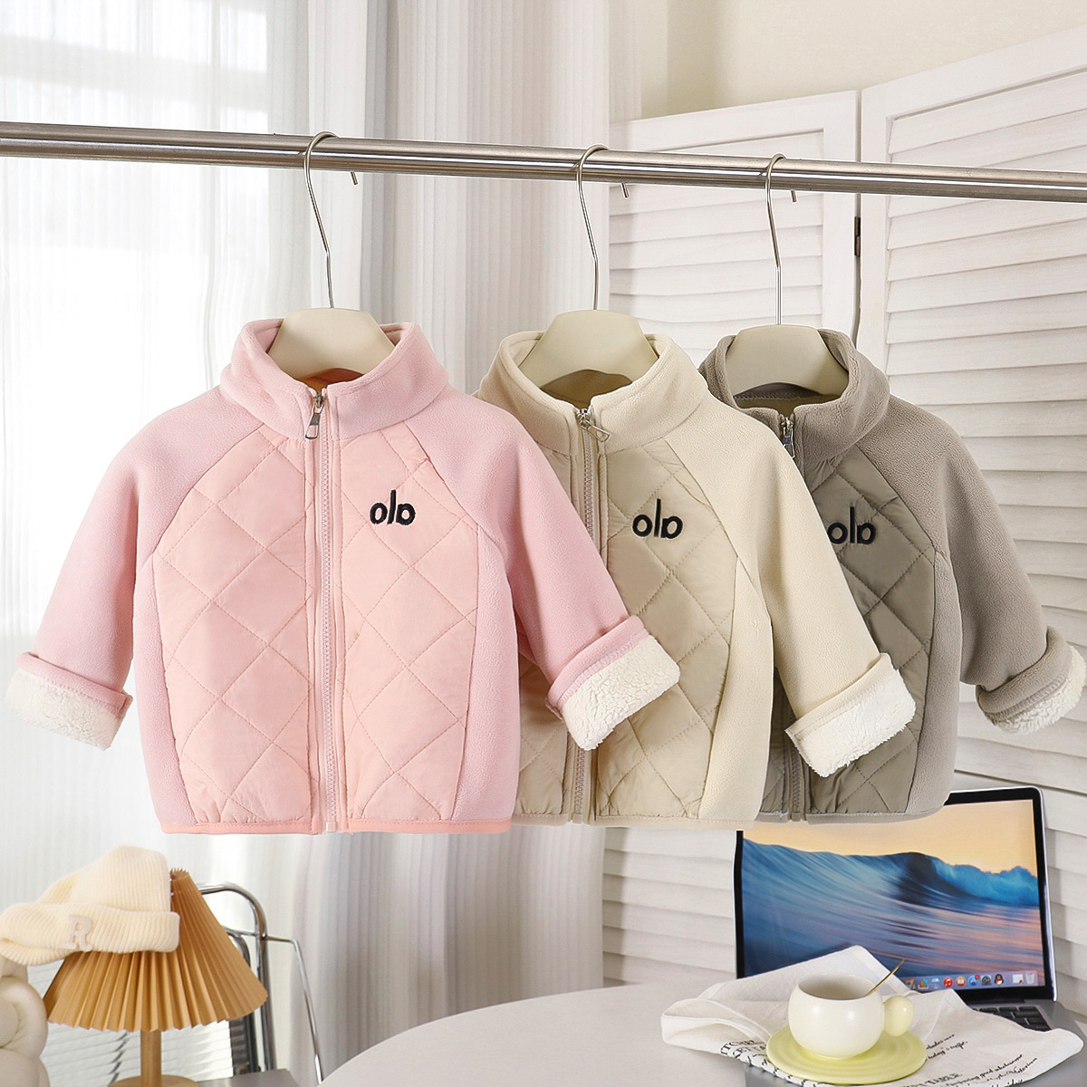 儿童奥粒绒加绒外套冬季新款男童保暖拉链上衣女童棉服童装批发