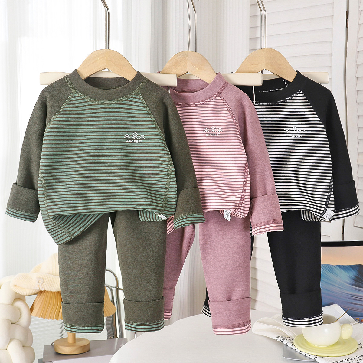 子供用保温服セット冬の新しい男の子の下着にベルベットをつけて、女の子の冬の赤ちゃんの秋冬の子供服を厚くする