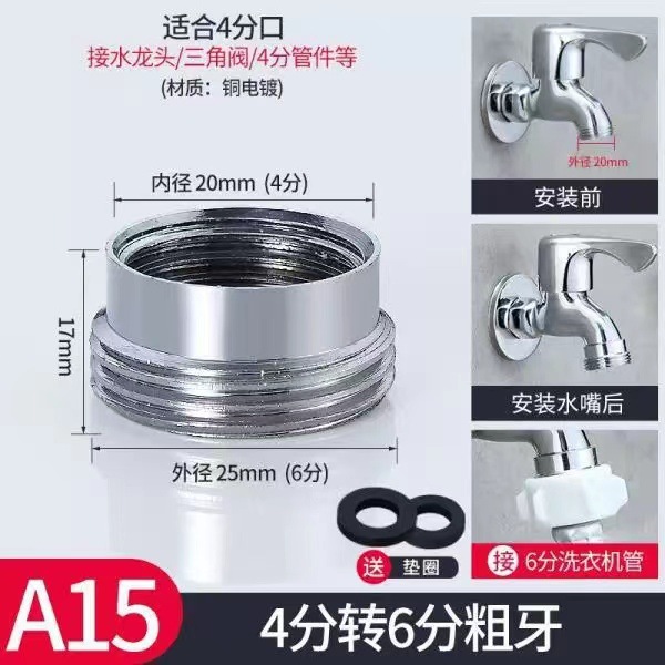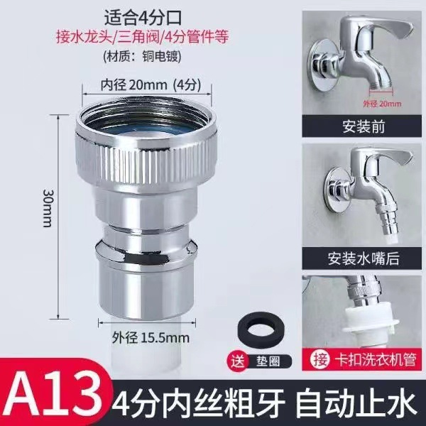 精铜转换接头4分转6分水嘴洗衣机水龙头配件自动止水阀防脱落接口