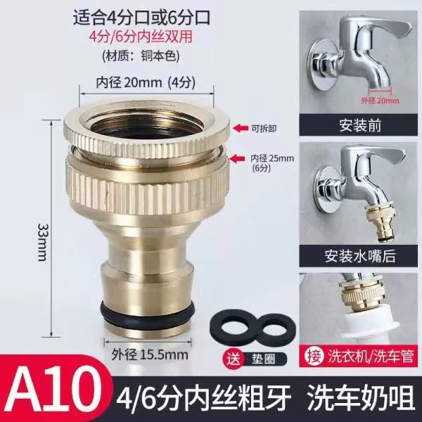 全銅洗濯機蛇口アダプタ4分6分洗車乳首ホース快速通水継手部品