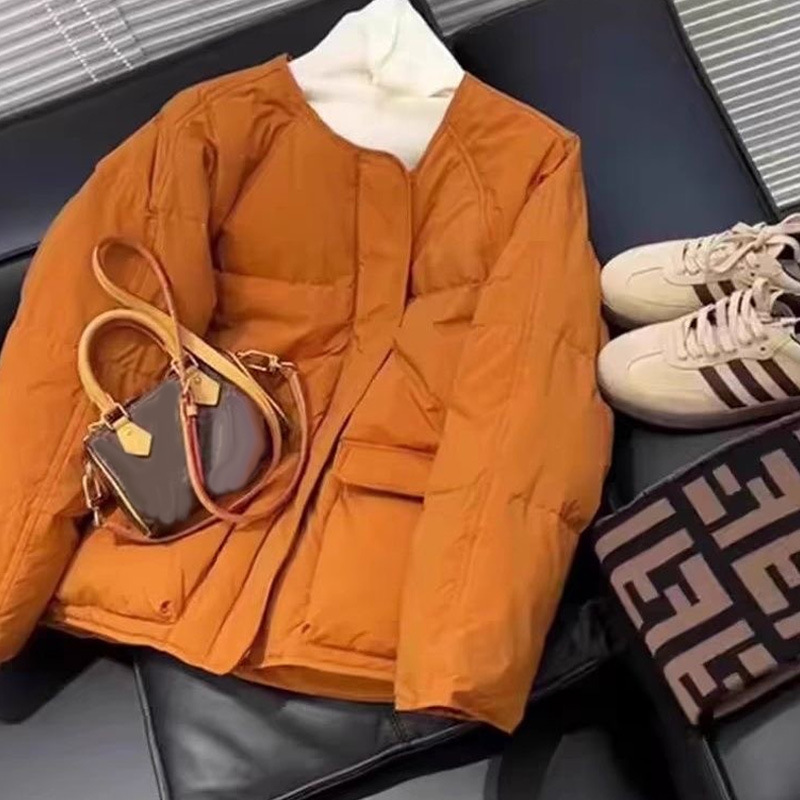 韩版休闲超好看南瓜橘羽绒棉服加厚保暖外套女小个子纯色拉链棉服