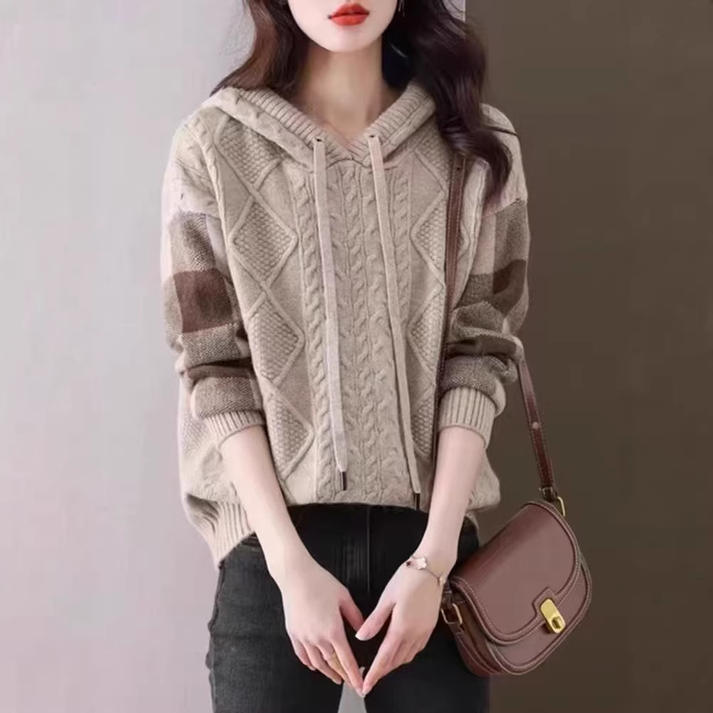 2025连帽新款秋冬慵懒针织衫休闲卫衣加厚宽松洋气上衣毛衣