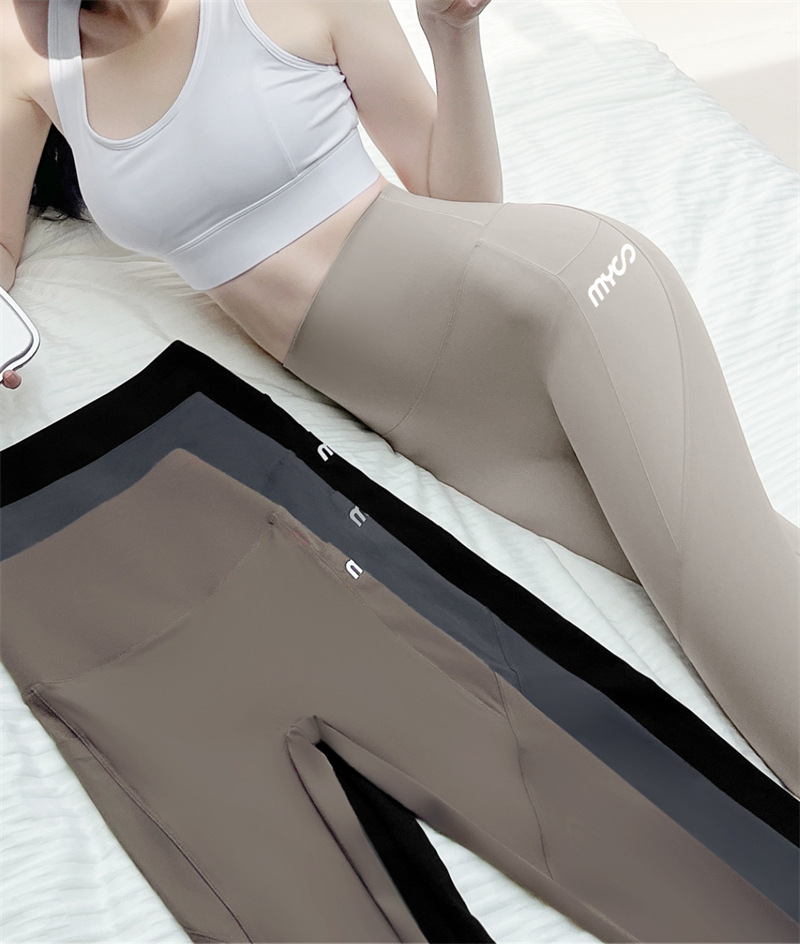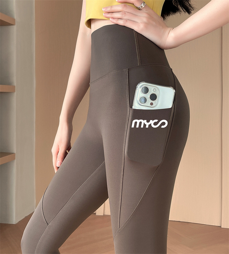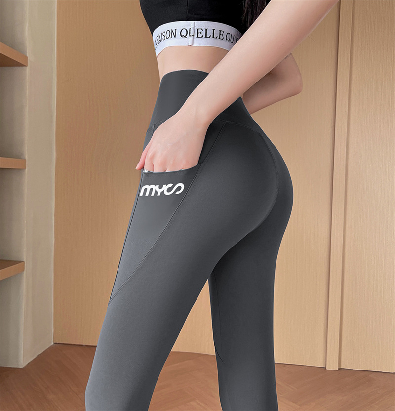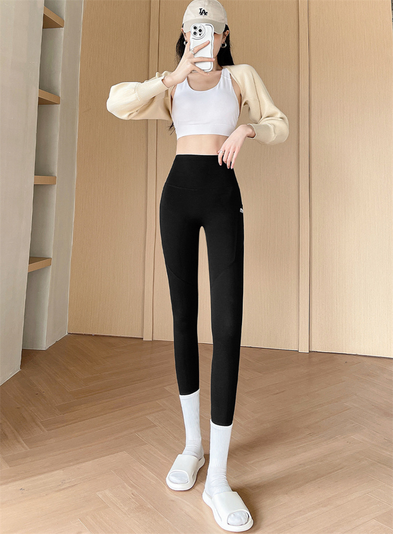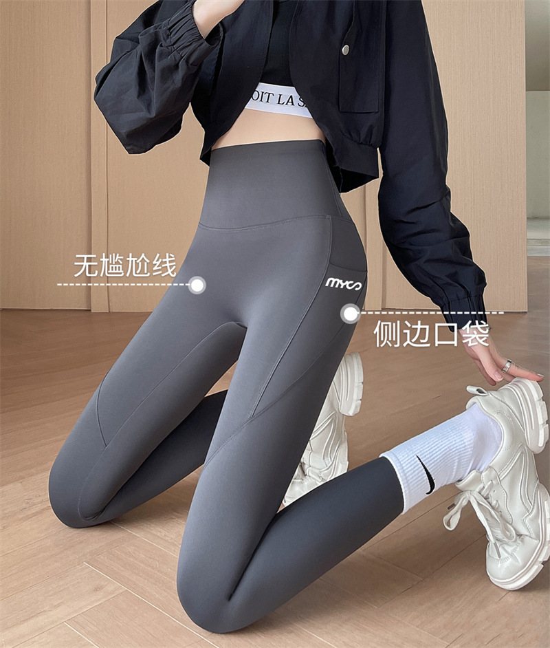 ポケットのサメの皮のレギンスの女性の春と秋の外は薄いタイプの高い腰を着て腹を収めて体を収めます。