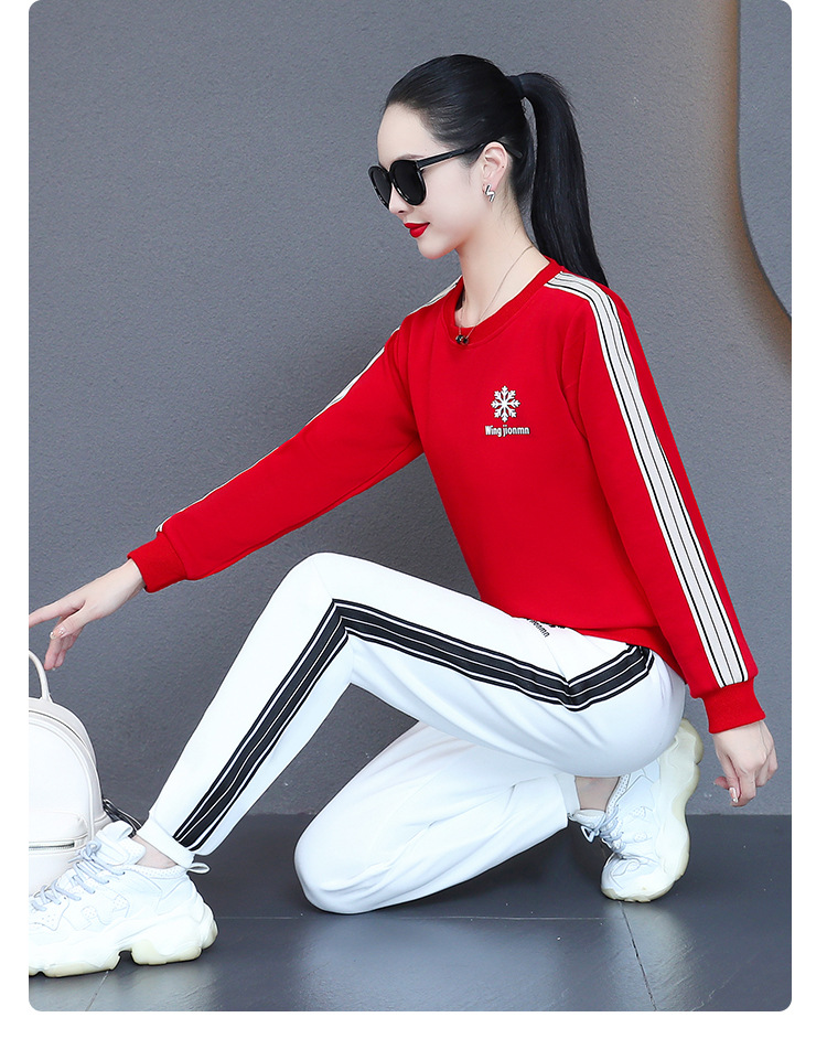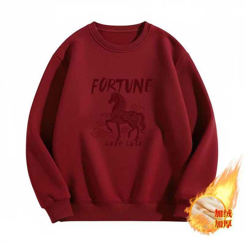 红色时尚百搭衣服宽松2026年加厚男女加绒圆领潮牌卫衣加绒上衣男