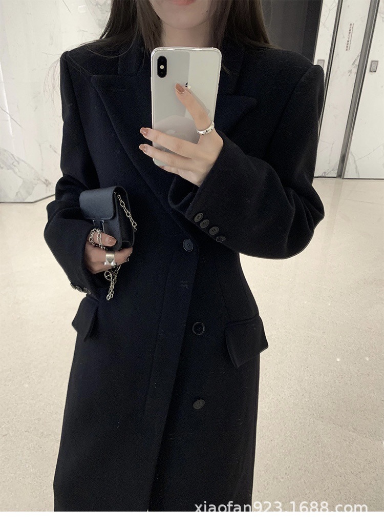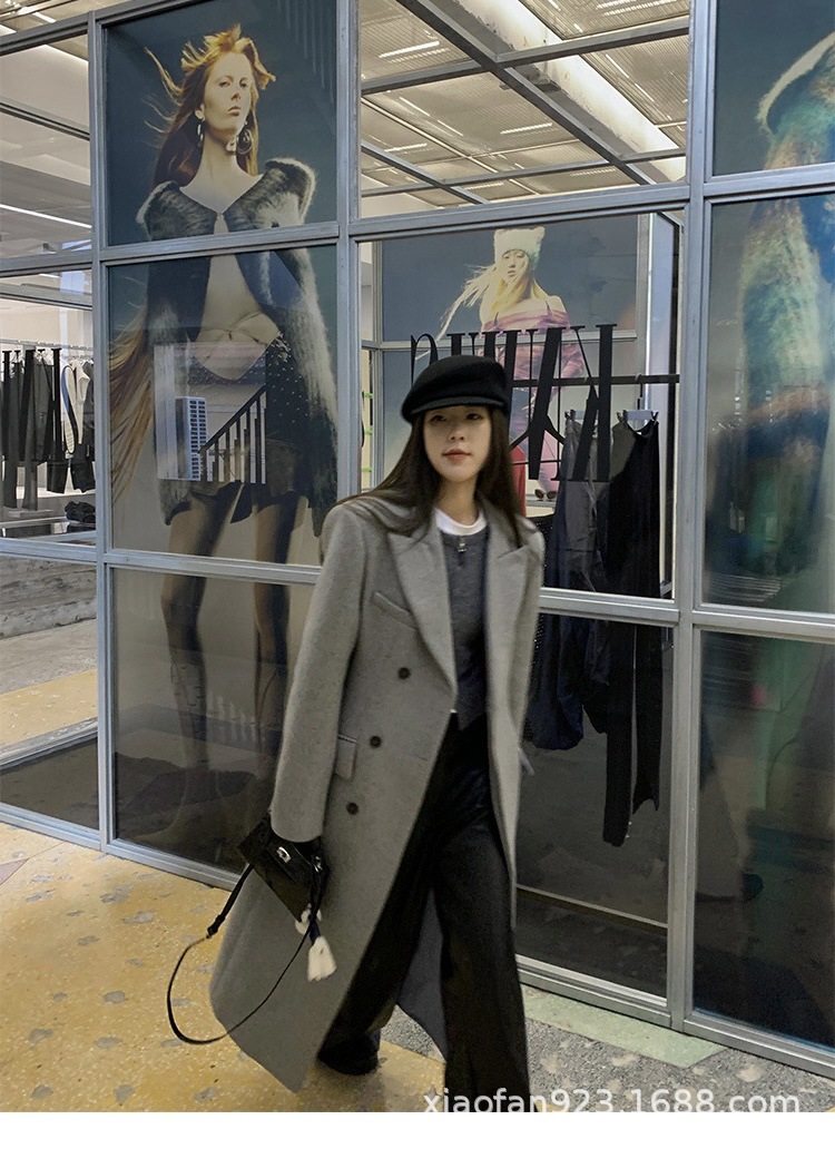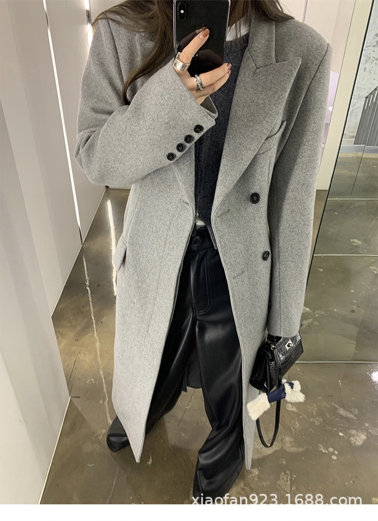 130衣长双面羊毛羊绒加厚加长大衣西装领六粒扣气质高级韩女外套
