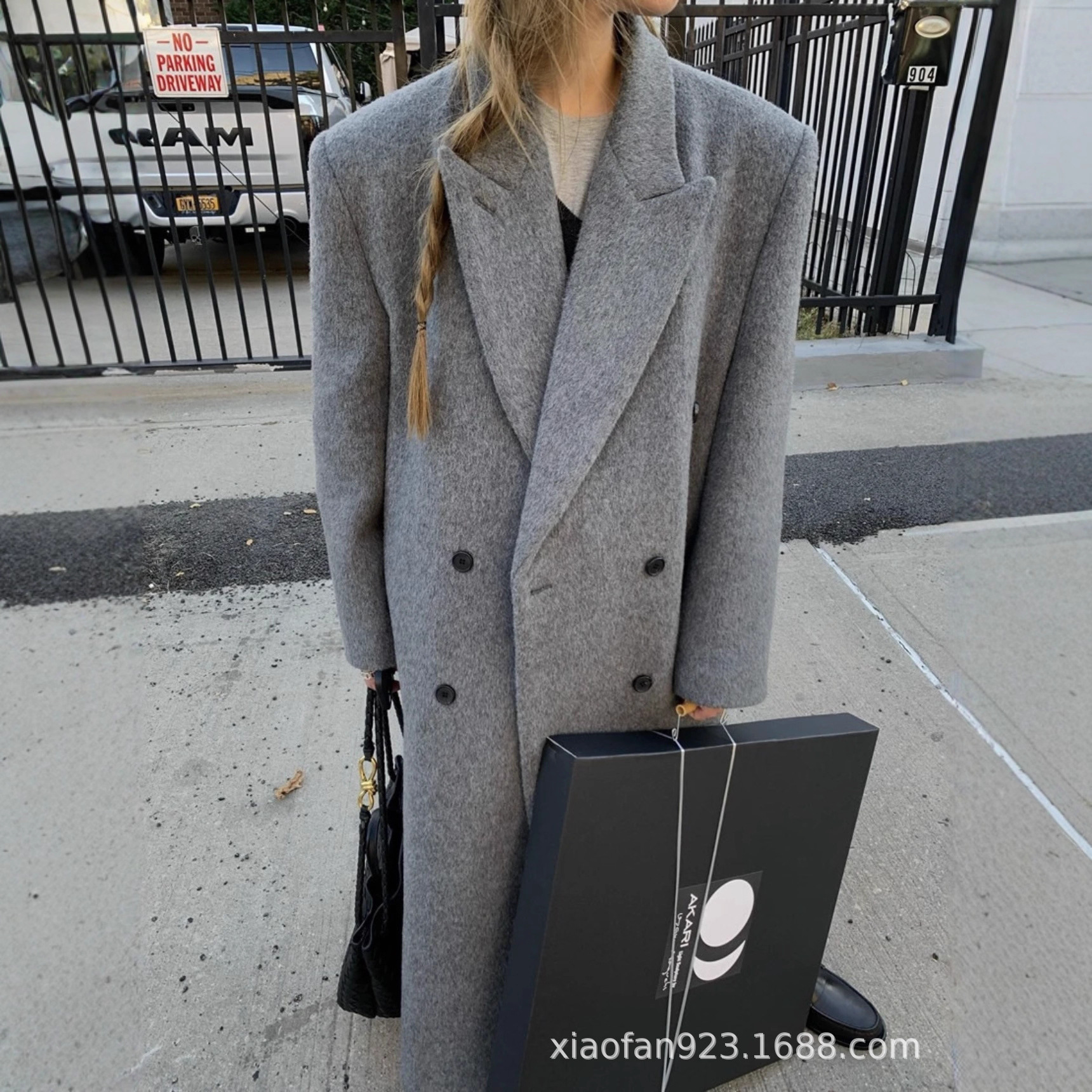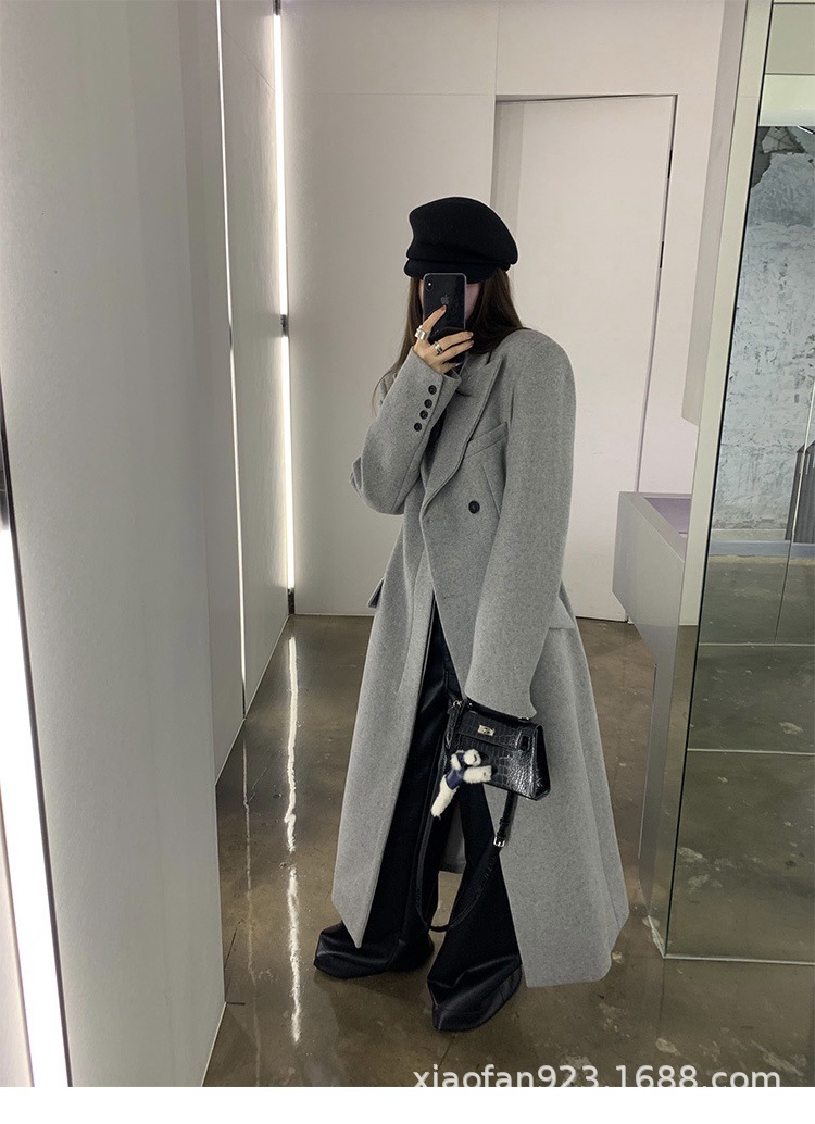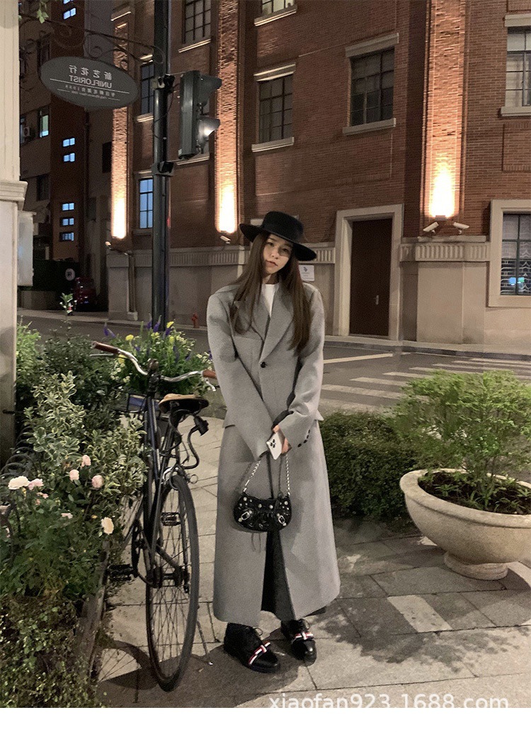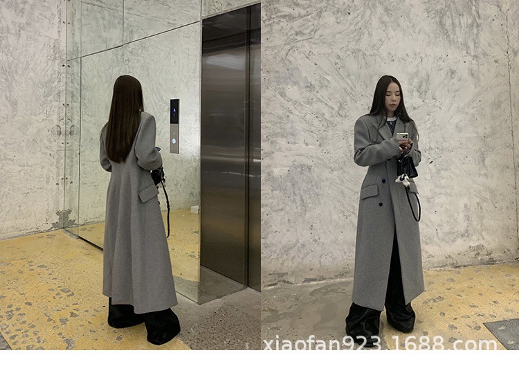 【预定】毛呢外套女冬超长款灰色韩版过膝到脚踝宽松大码加厚高个