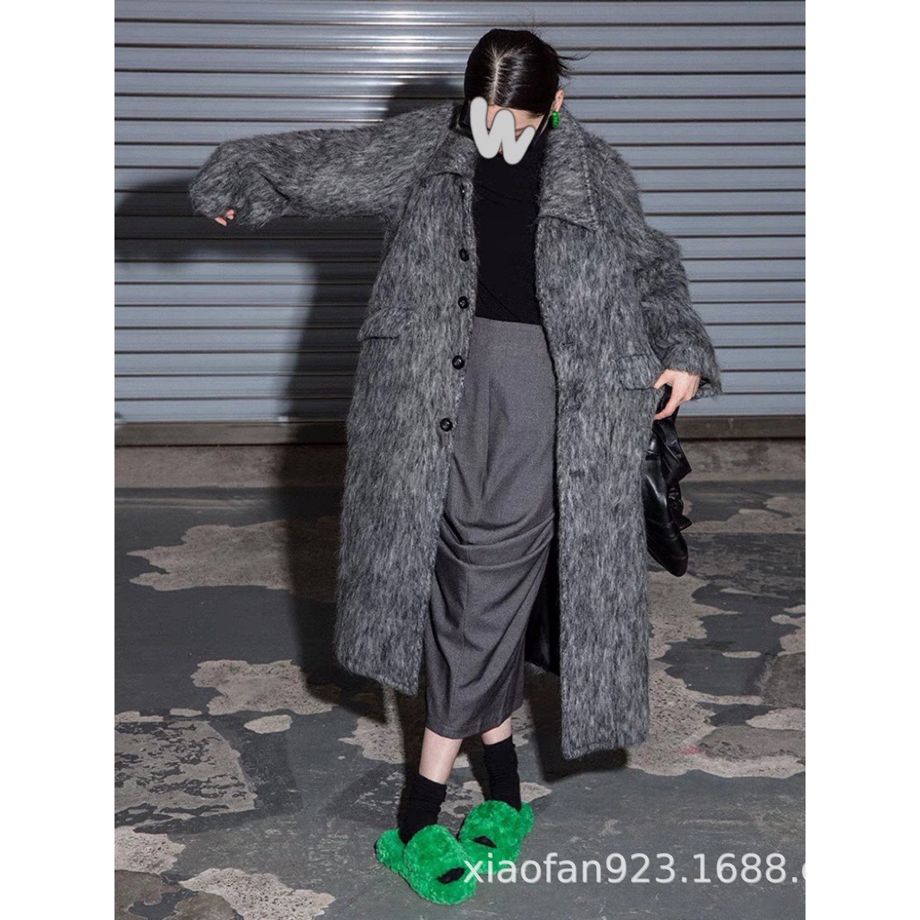 【在庫あり】モヘア 冬新作 ダークグレー ロングヘア 高級感 ウールコート ウールアウター