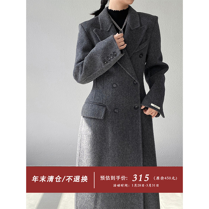 灰色系小蛮腰羊绒外套女高级感收腰显瘦长款气质双面羊毛呢子大衣