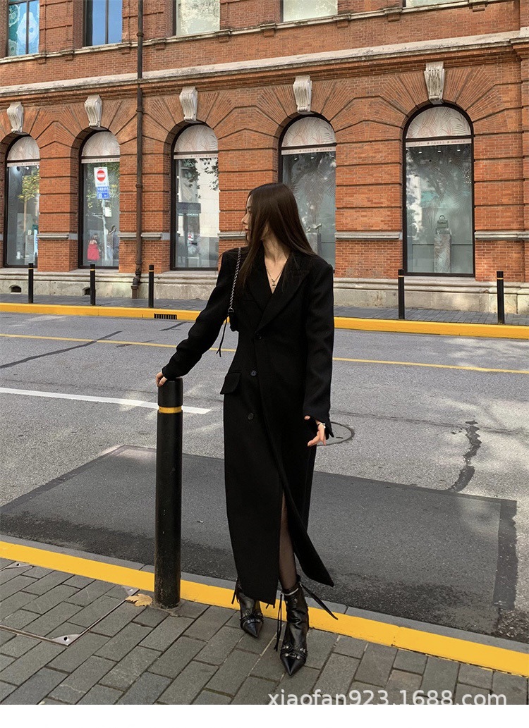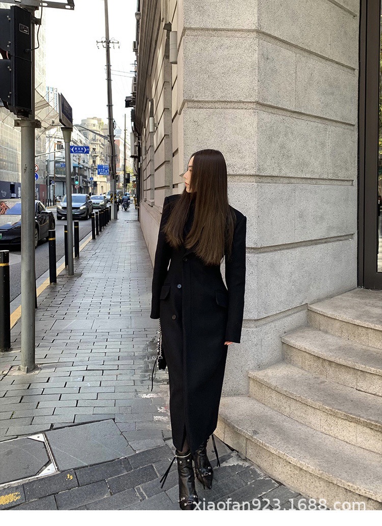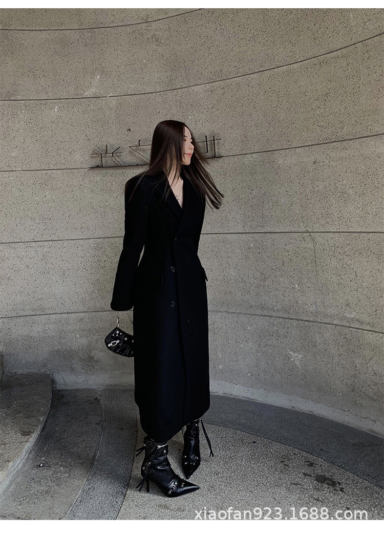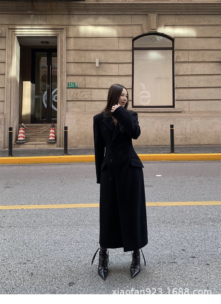 2025秋冬新作 韓国風ウール製 手縫いダブルボタン ウエストシェイプ ロングコート スーツカラー ジャケット