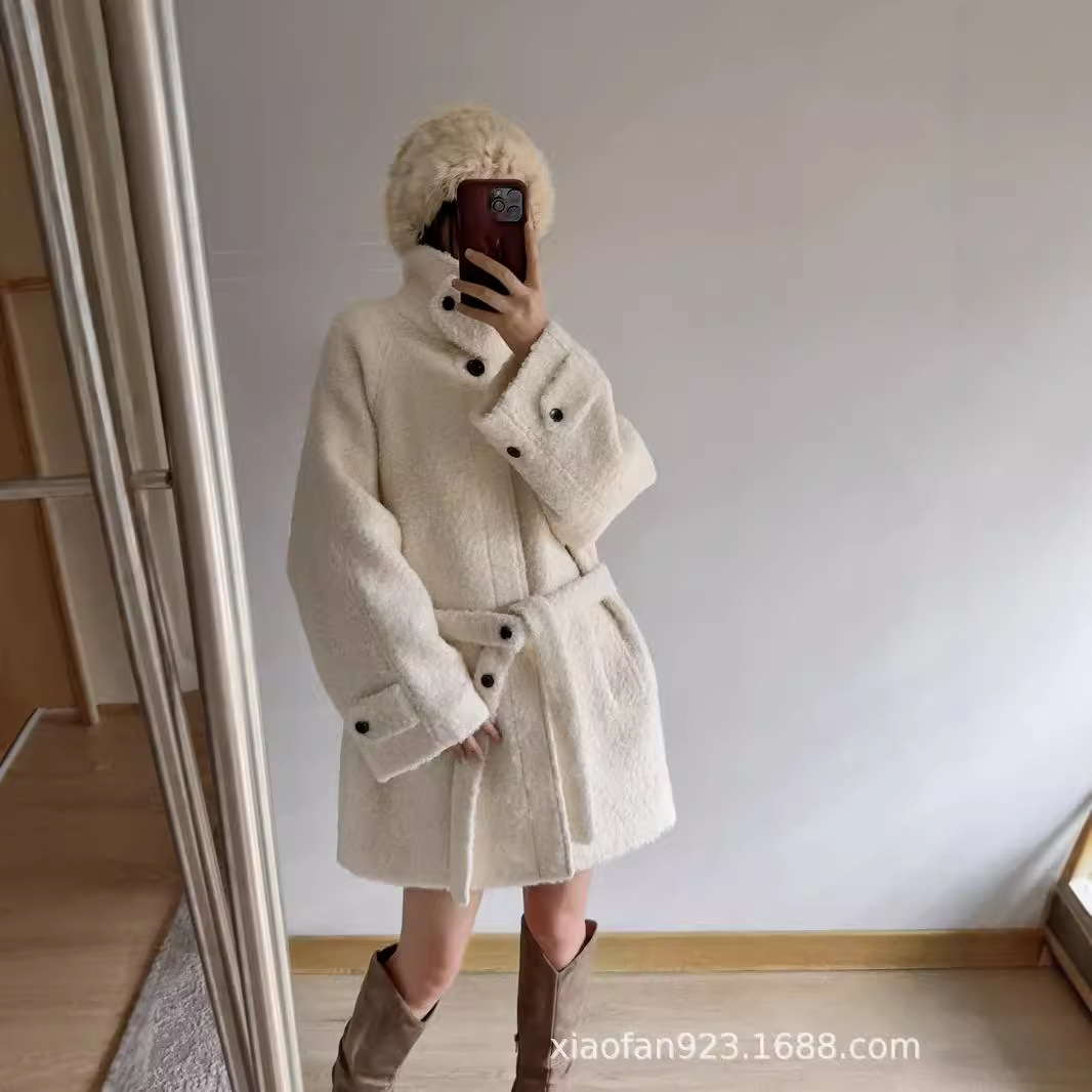 【現品】韓国版のゆったりとしたリングウールの「紙切れのコート」の巻き毛コート (ベルト付き)