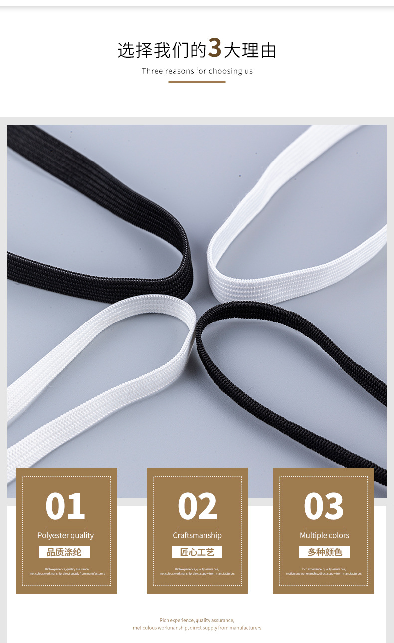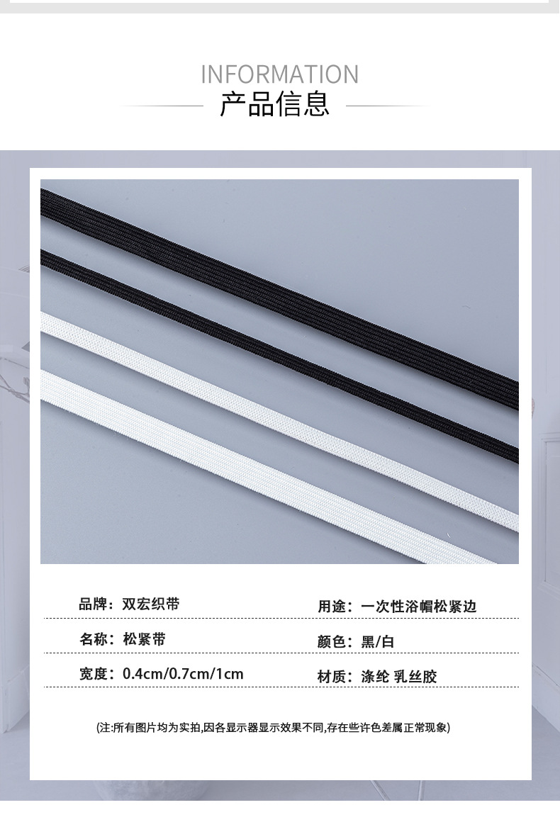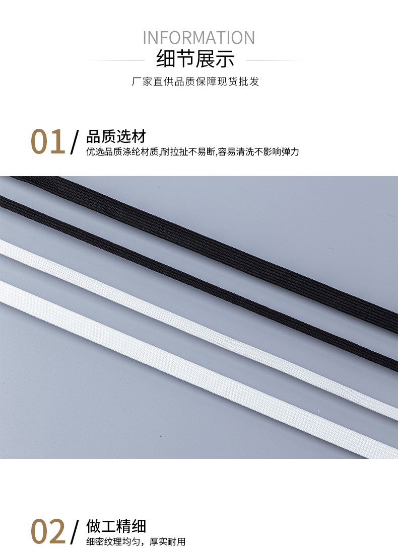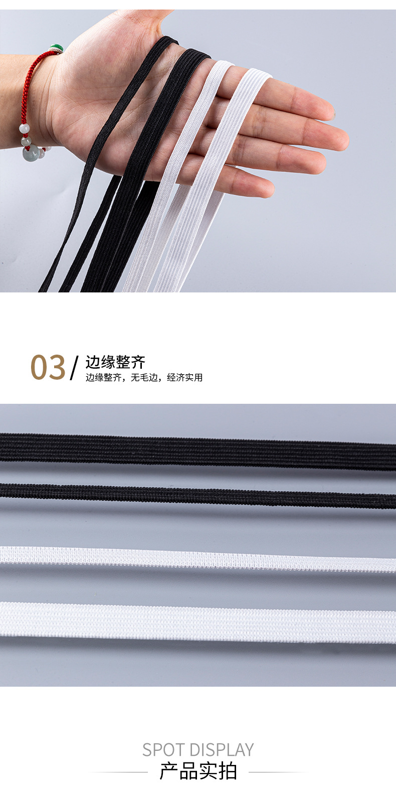 メーカー現物高弾3mm6mm白黒平平狭走馬弾性帯ベッド笠袖カバー収口走馬弾性帯