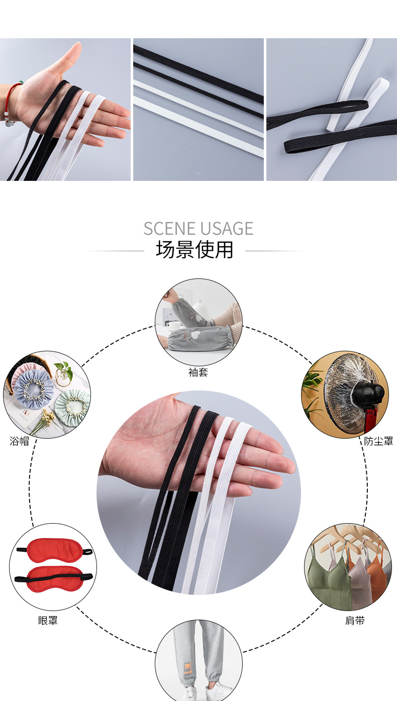 メーカー高弾性ゴムバンド、フラットタイプ3mm-12mm、ベッドシーツの袖口、袖口の締め付け、ランニング用伸縮バンド