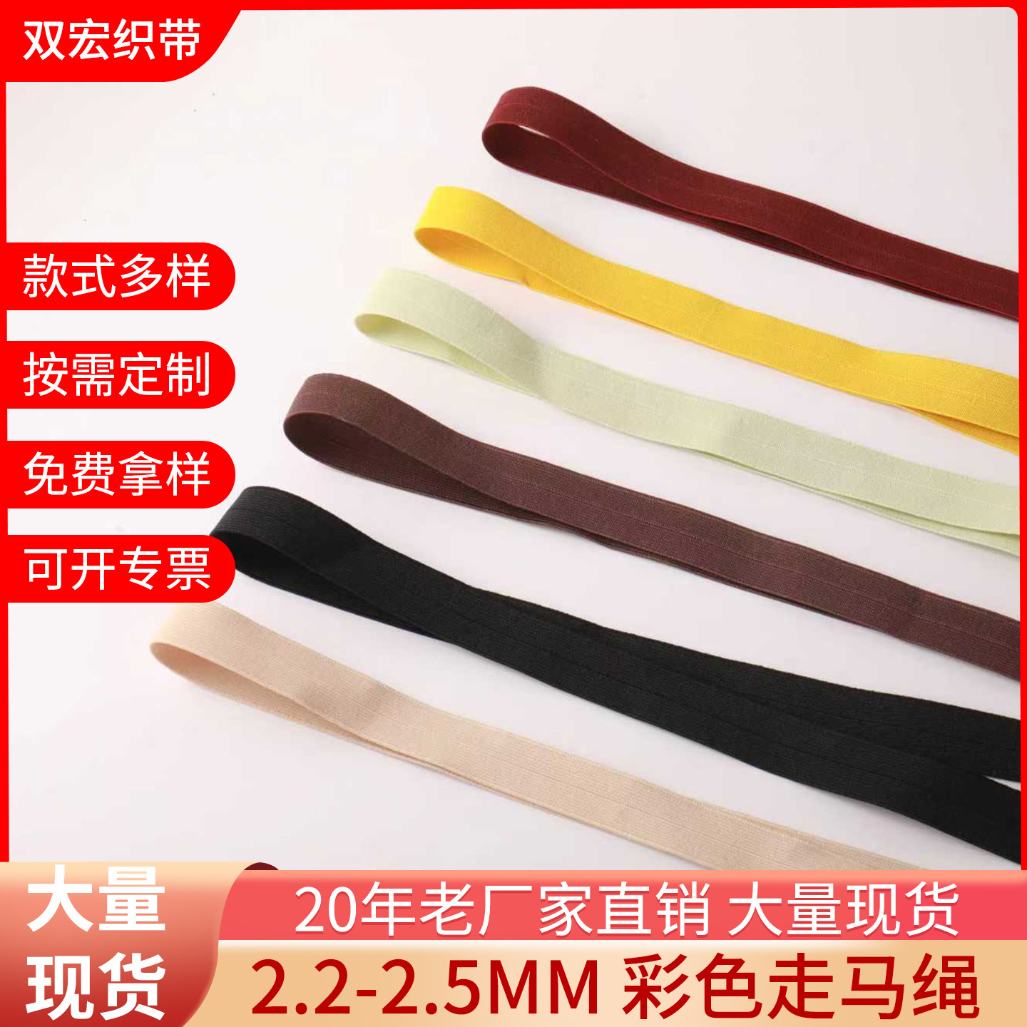 加厚彩色对折松紧带现货瑜伽裤包边带衣服袖口弹力带纺织松紧辅料