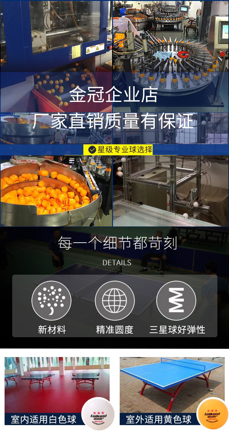 卓球卸売三ツ星トレーニングボール高弾性と耐久性新素材 ABS 黄白屋外卓球