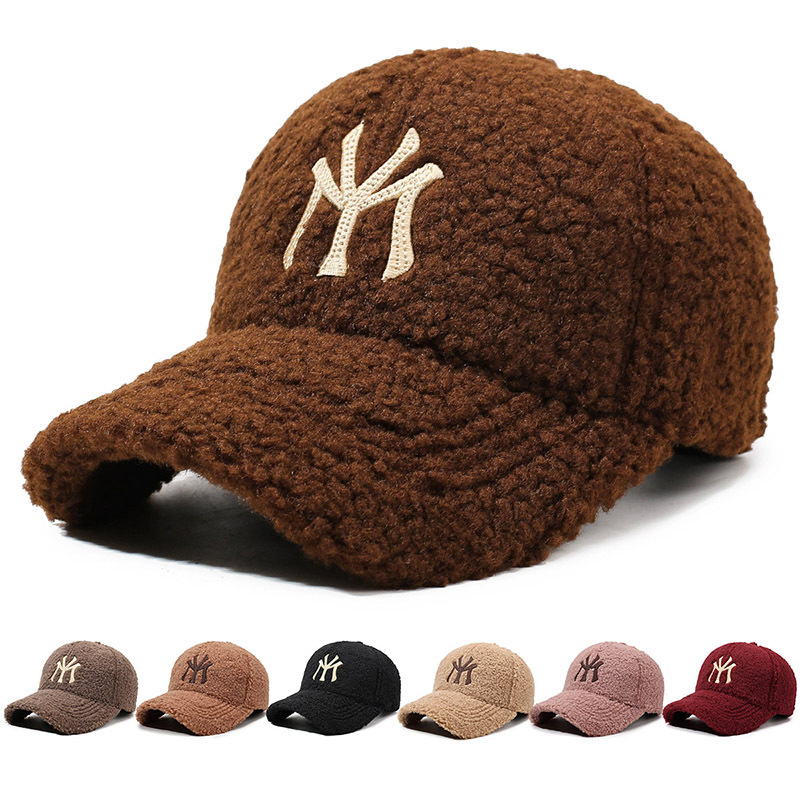 大头围字母刺绣棒球帽子女2025秋冬新款保暖羊羔绒泰迪鸭舌帽男潮