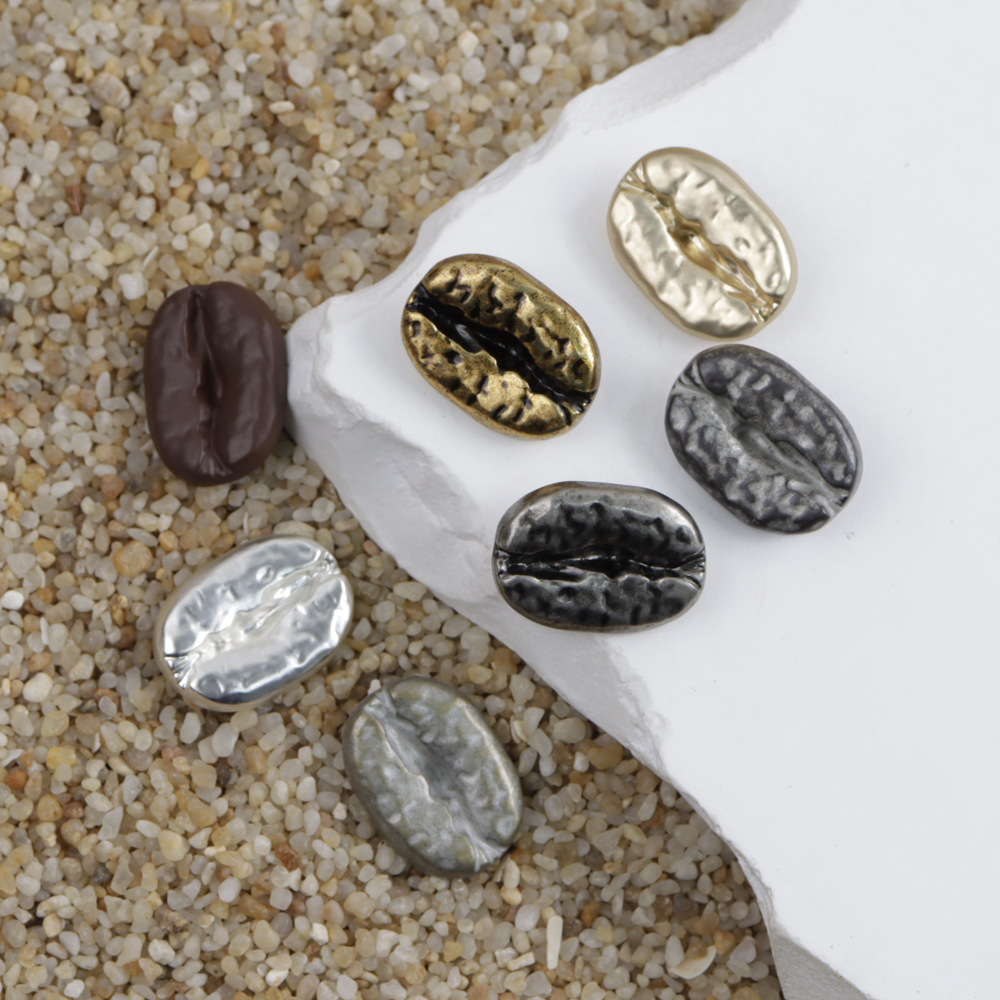 コーヒー豆デザイン金属ボタン古青色古銀色黒ニッケル色霧金色茶色異形不規則ボタン