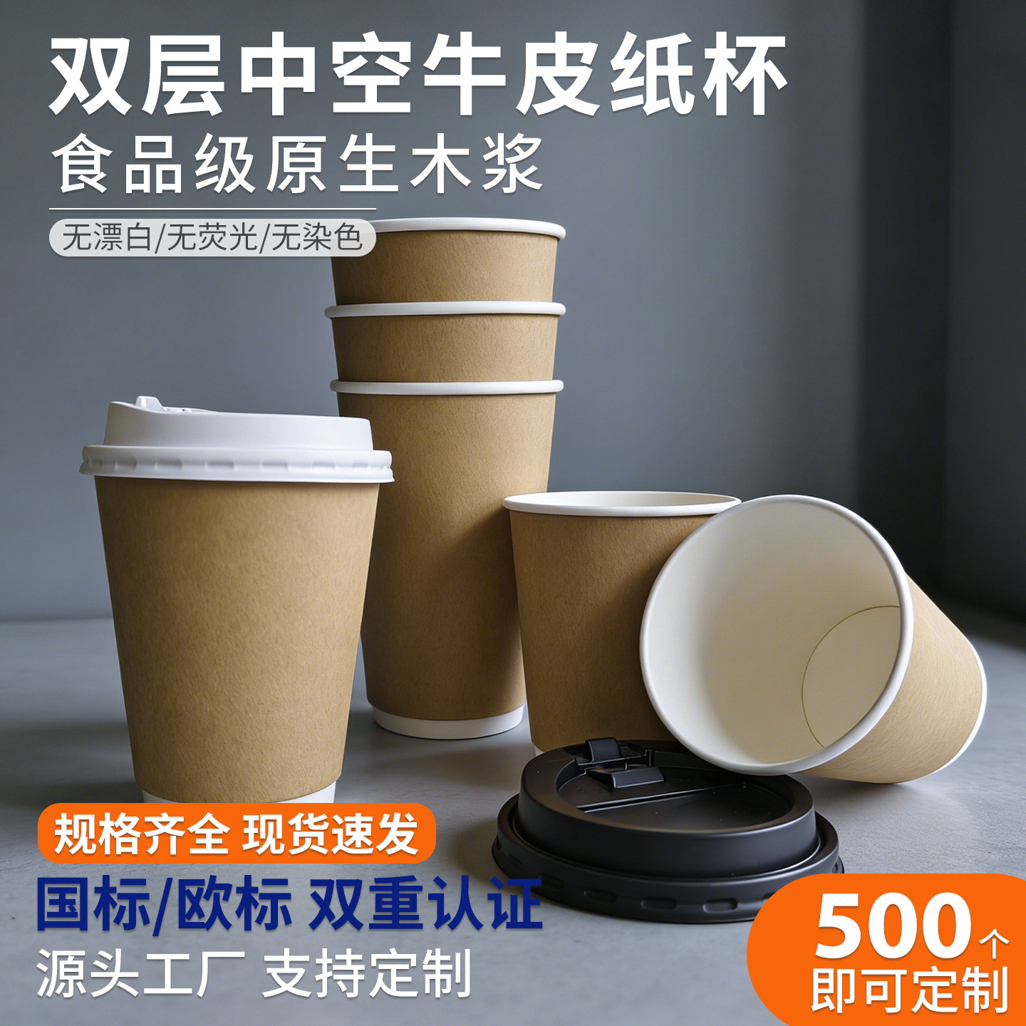 咖啡纸杯定制奶茶豆浆双层中空杯一次性的内外双牛皮纸热饮打包杯