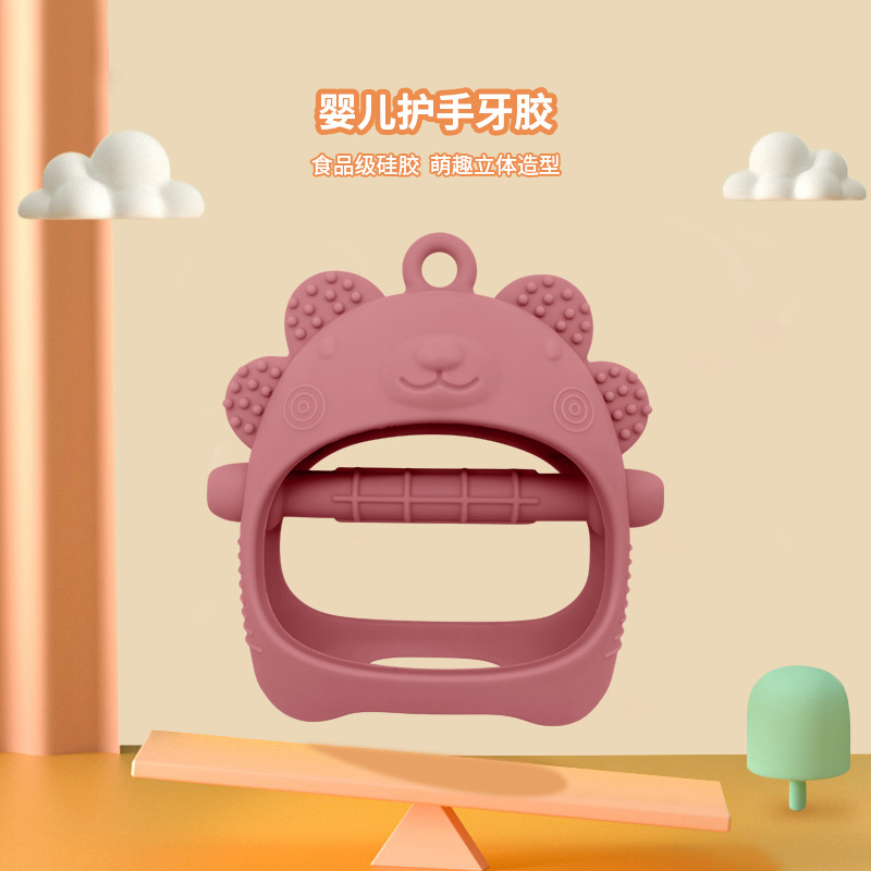 跨境宝宝食品级硅胶牙胶小熊手套玩具婴儿磨牙棒防吃手安抚玩具