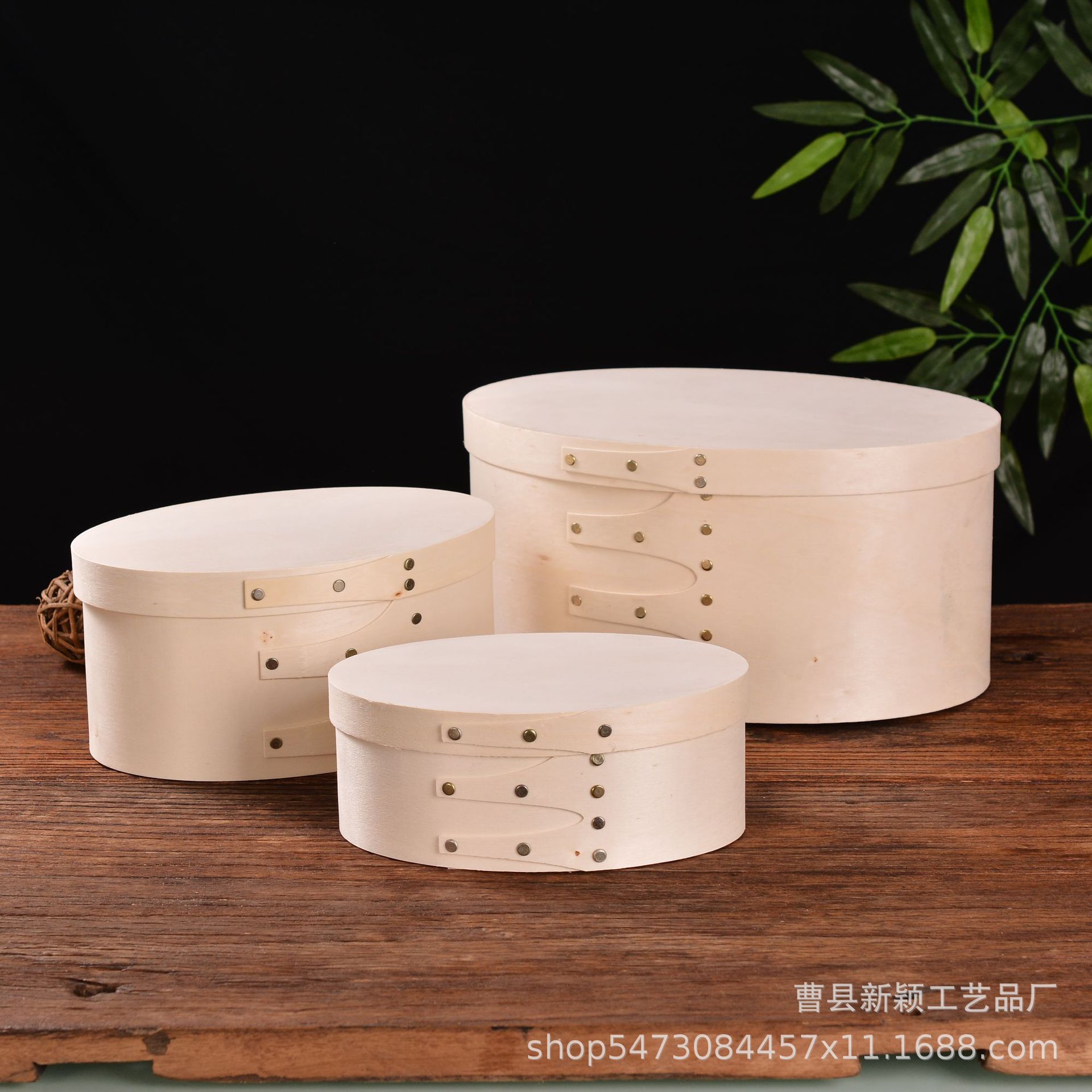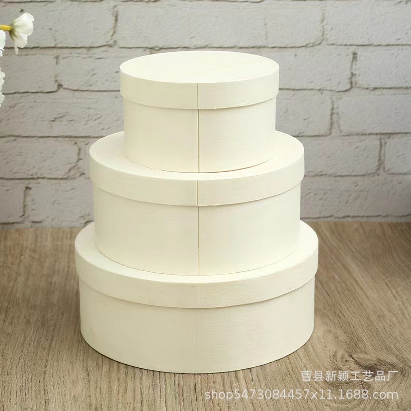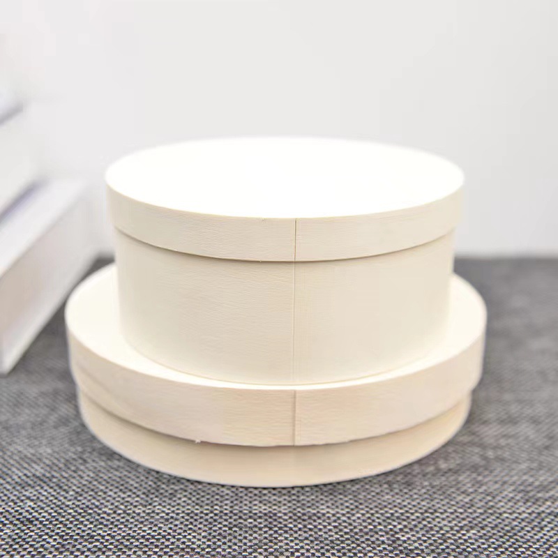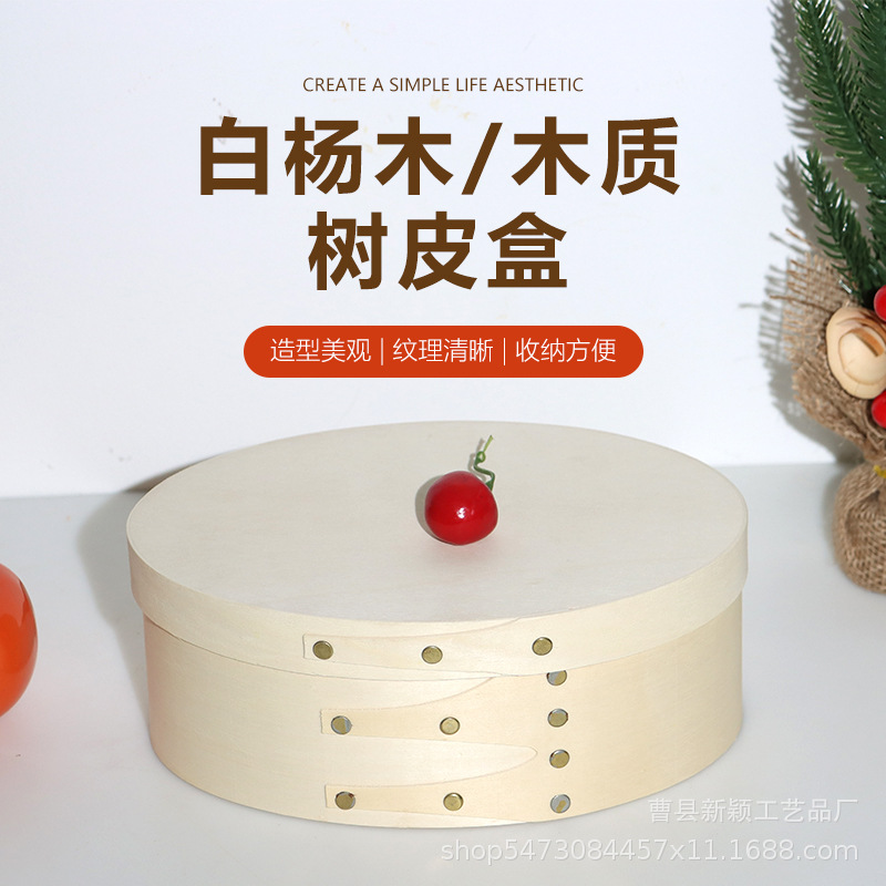 現代の簡単なポプラの木の皮の箱の家庭用の木製の丸いケーキの箱の天地の蓋の木の柔らかい樹皮の装飾品の箱