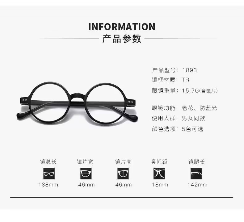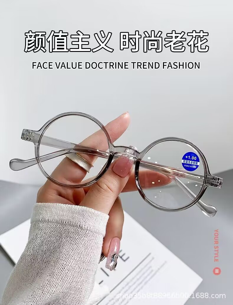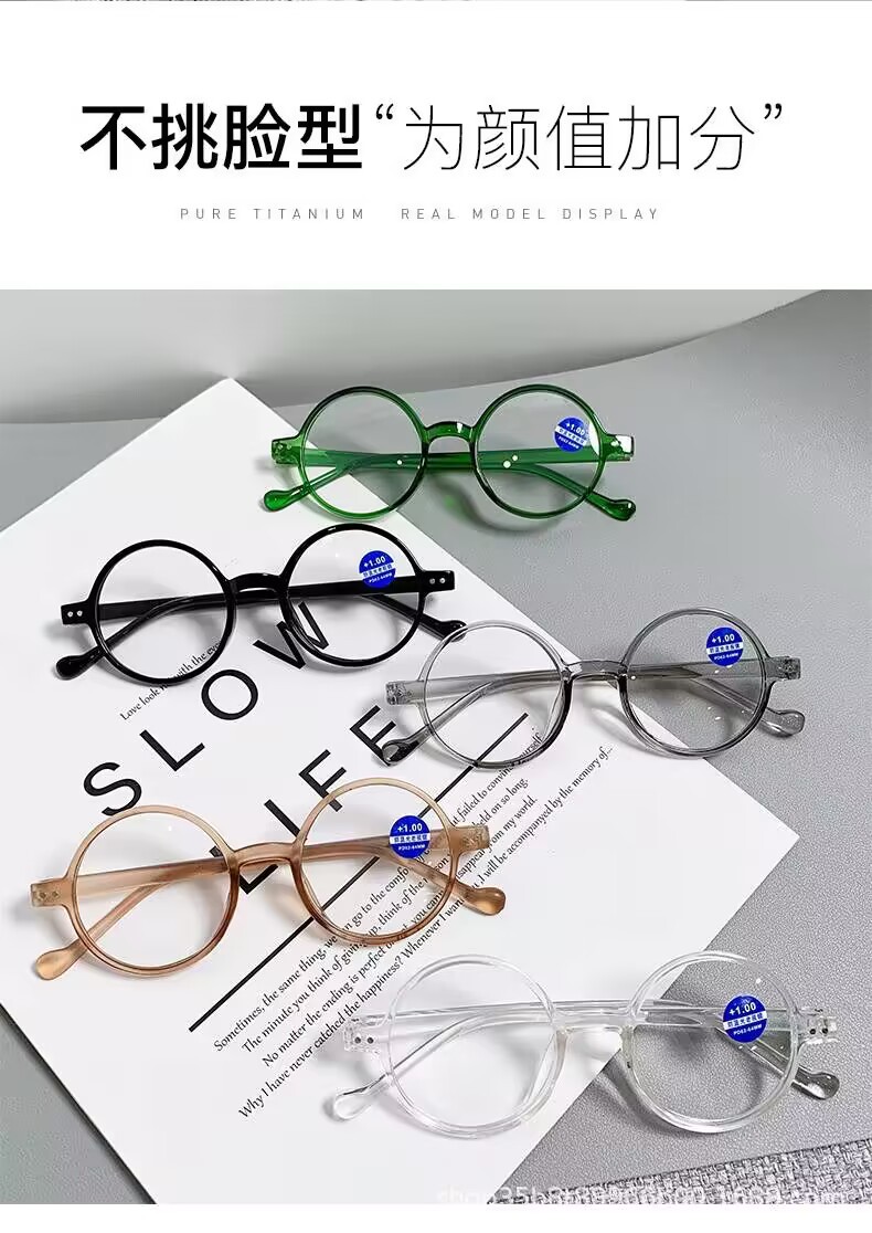 2023新型ネット赤小円枠眼鏡高精細老眼鏡ファッション超軽量中高年モデル遠視鏡
