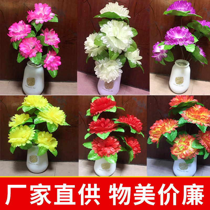 批发仿真菊花清明扫墓祭祀花菊花上坟菊花绢花5头绿叶菊坟头花