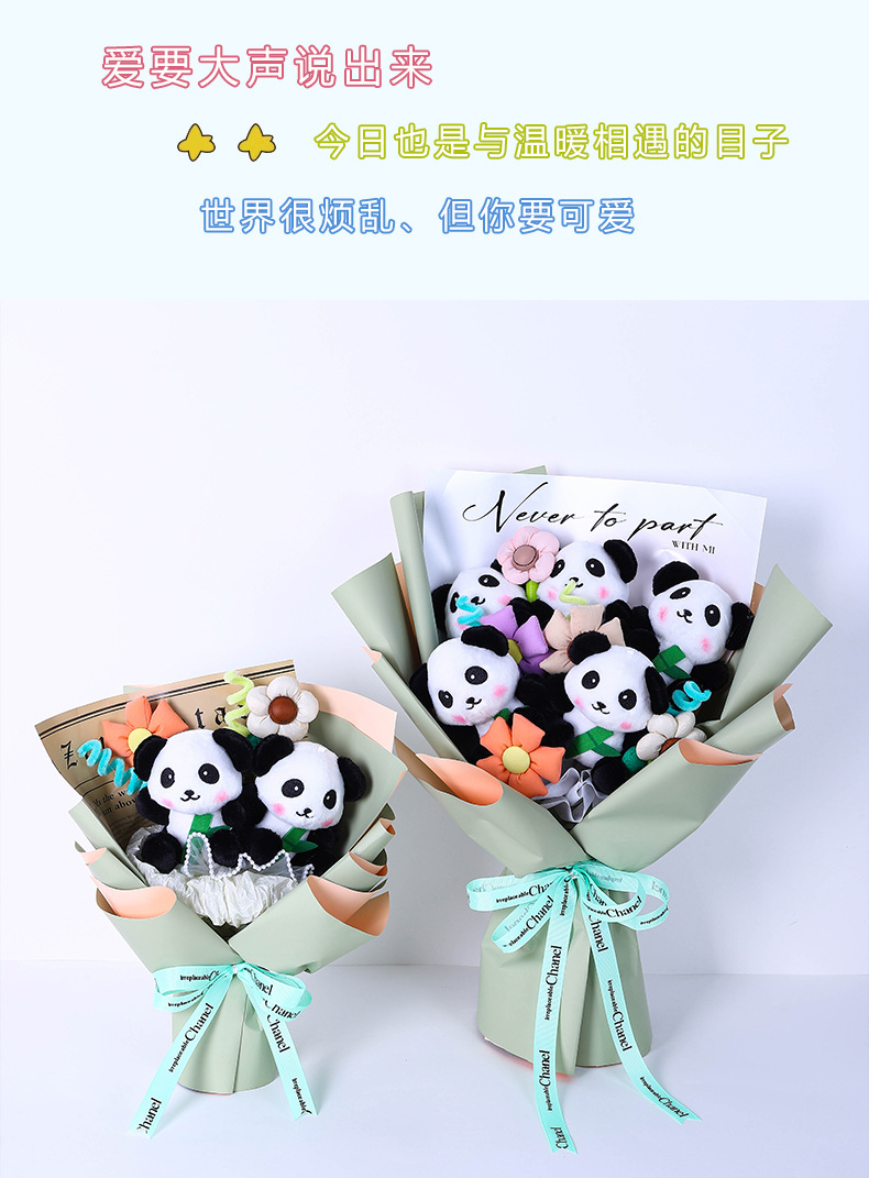 漫画風パンダのぬいぐるみブーケ、ネットで話題の子供の日・誕生日プレゼント、可愛い人形ブーケ、越境販売
