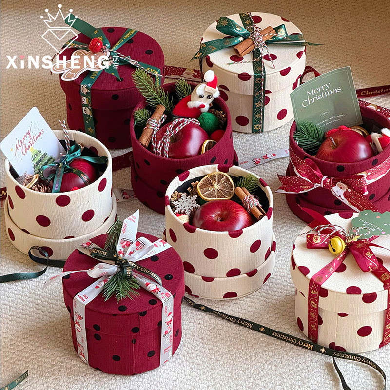 芯苼 圣诞圆形礼盒波点圣诞节苹果包装盒节日礼物花艺手工diy材料