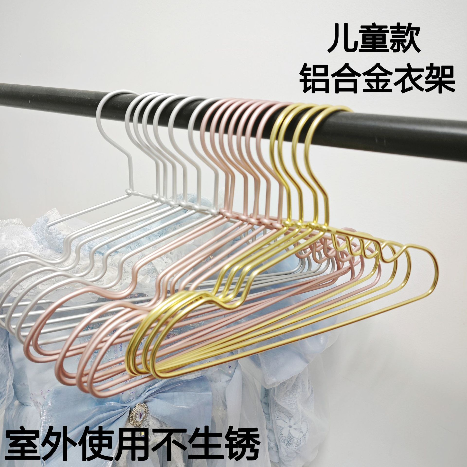 金色の子供用衣類ハンガー、小型、衣類掛け、アルミニウム合金、ベビー服ハンガー、金属製、子供用乾燥ハンガー、軽奢風