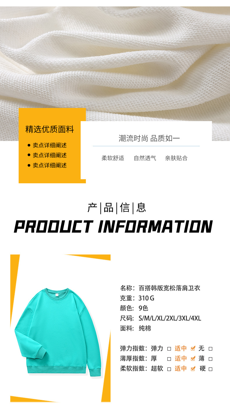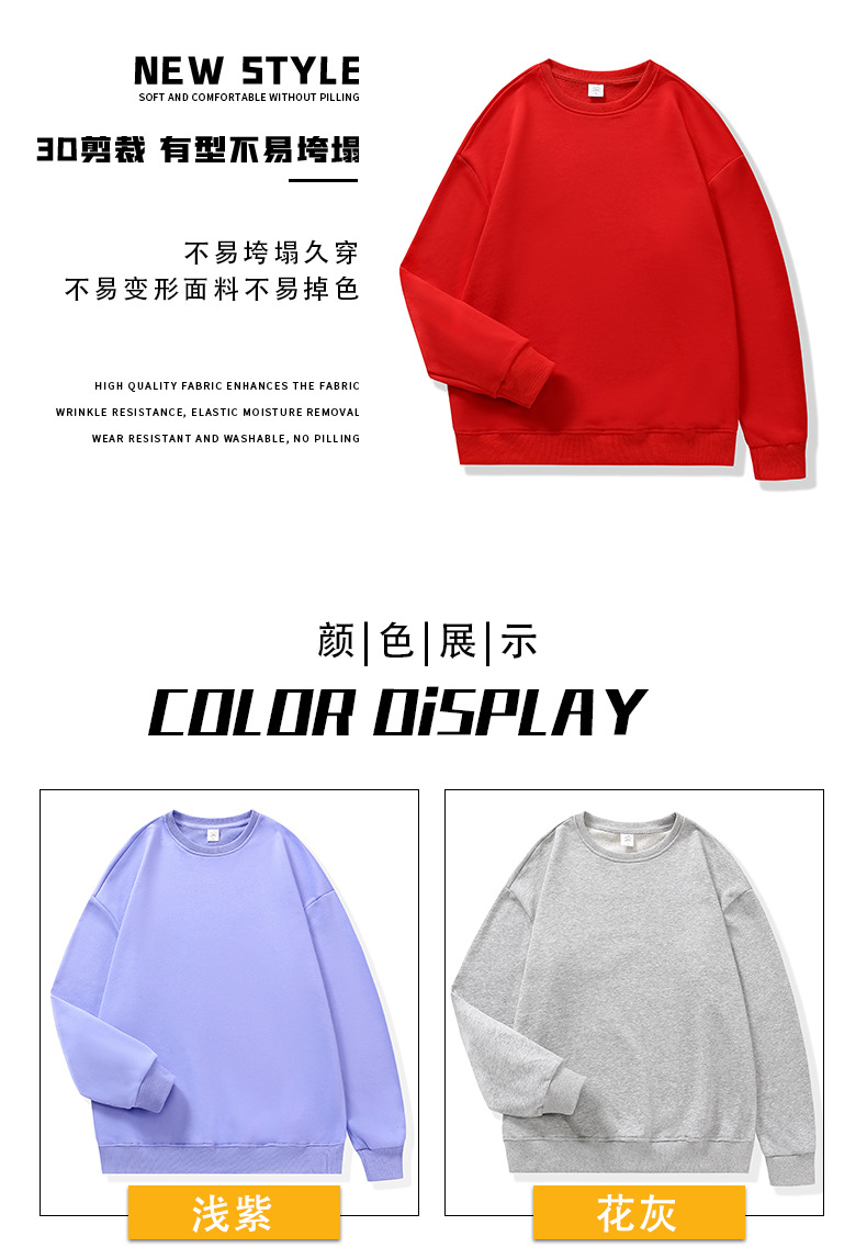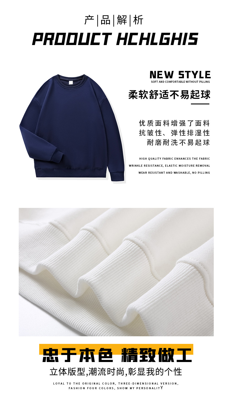 300克大毛圈宽松落肩圆领卫衣 潮流长袖学生毕业班服卫衣印图LOGO