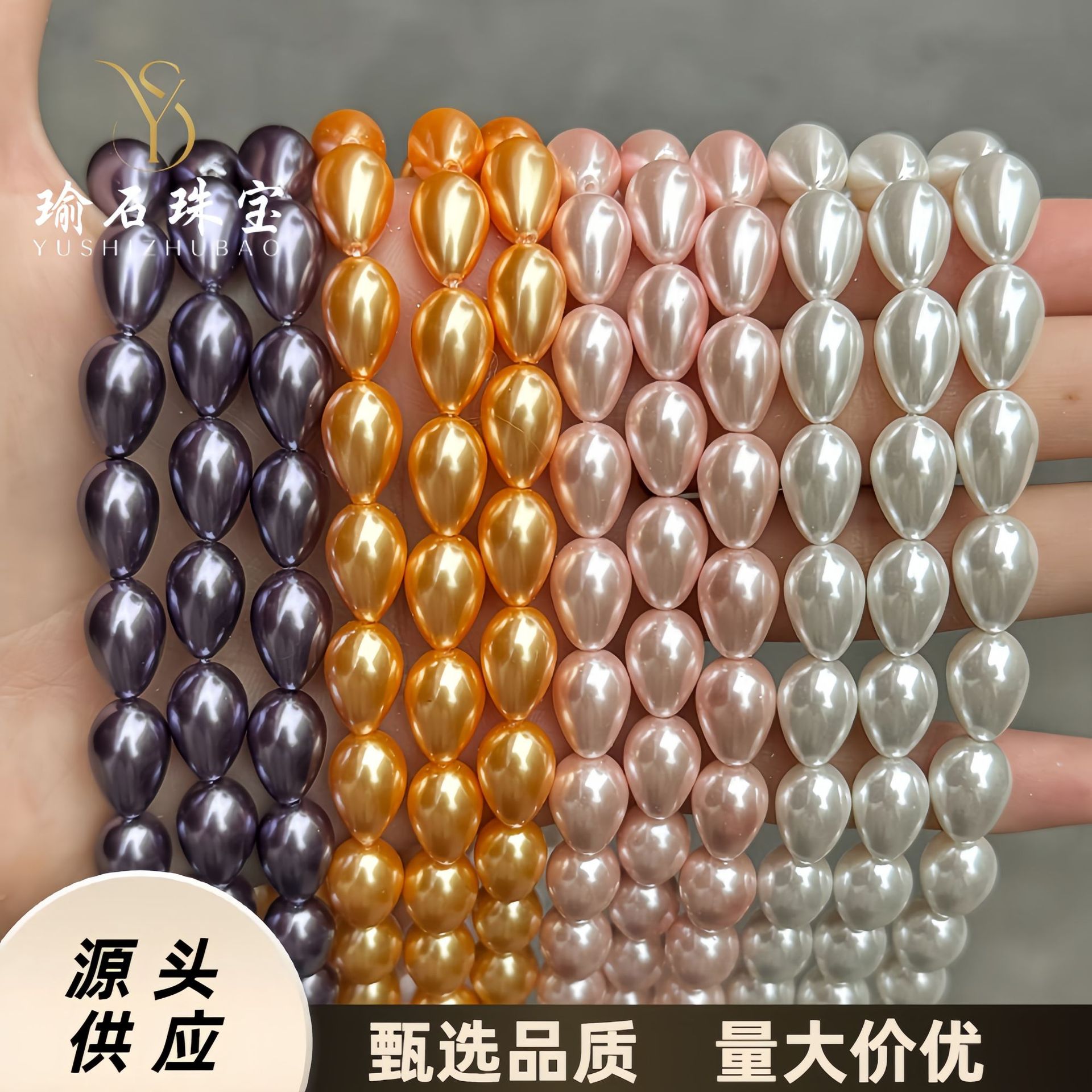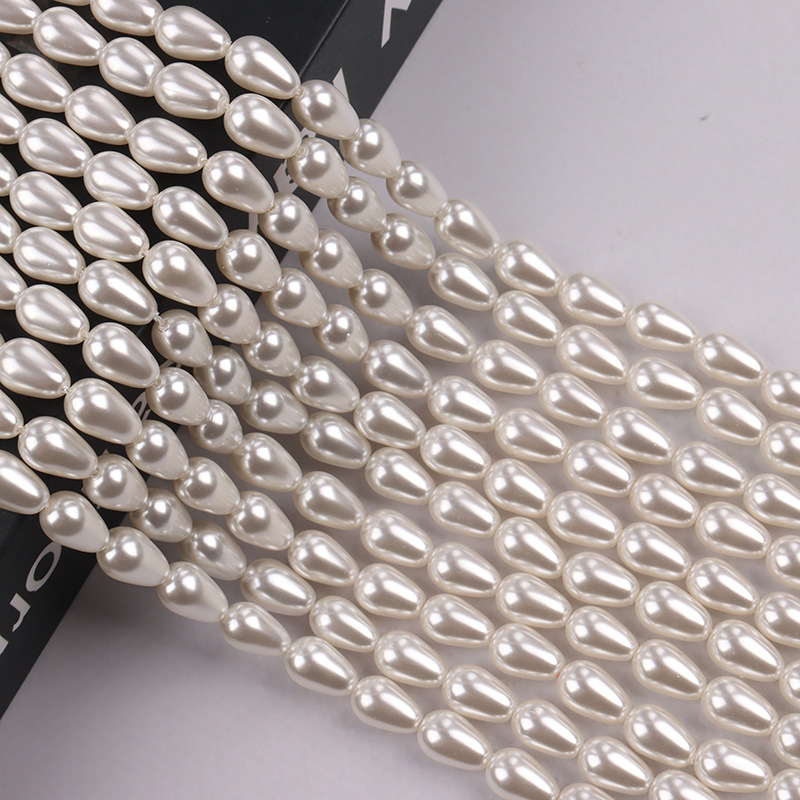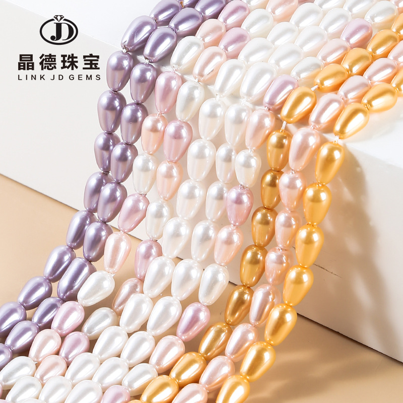 施家贝珠水滴形散珠子直孔仿珍珠diy项链手链半成品饰品配件批发