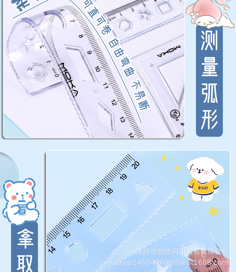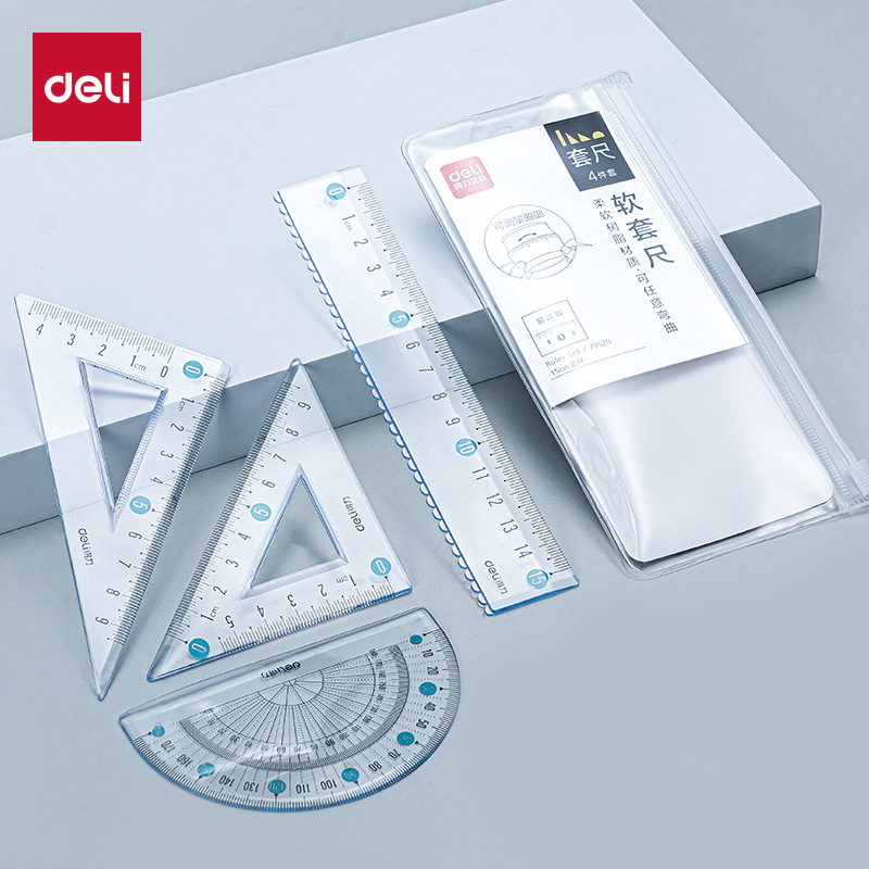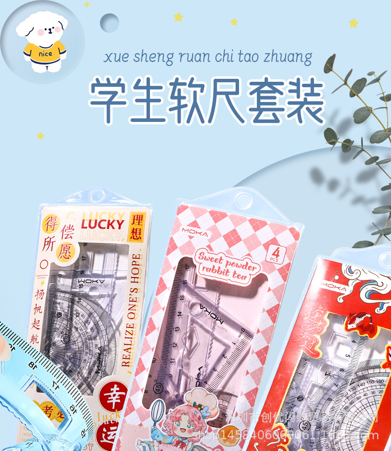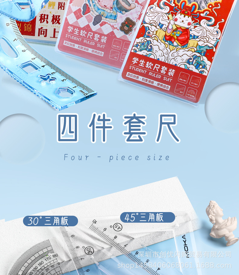 軟尺四点セット学生文房具セット20cm多機能厚さ軟尺角尺軟円規直尺セット