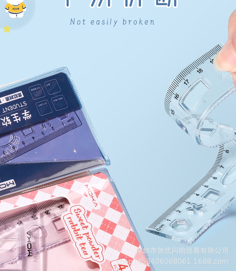 有力ソフトジャケット小学生専用物差し15cm多機能試験製図測定セット目盛角