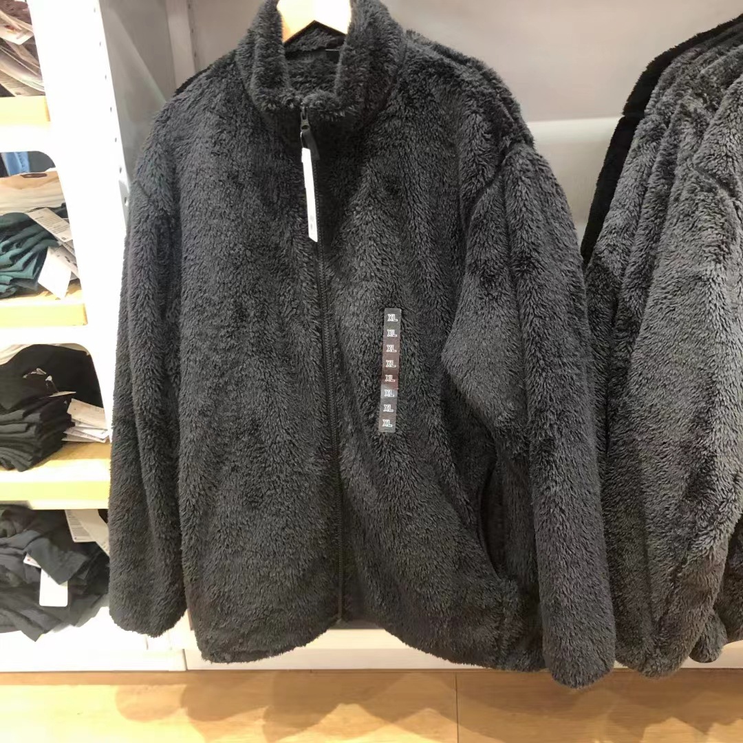 日系男装防风仿羊羔绒摇粒绒开衫长袖宽松圆领保暖外套冬季481183