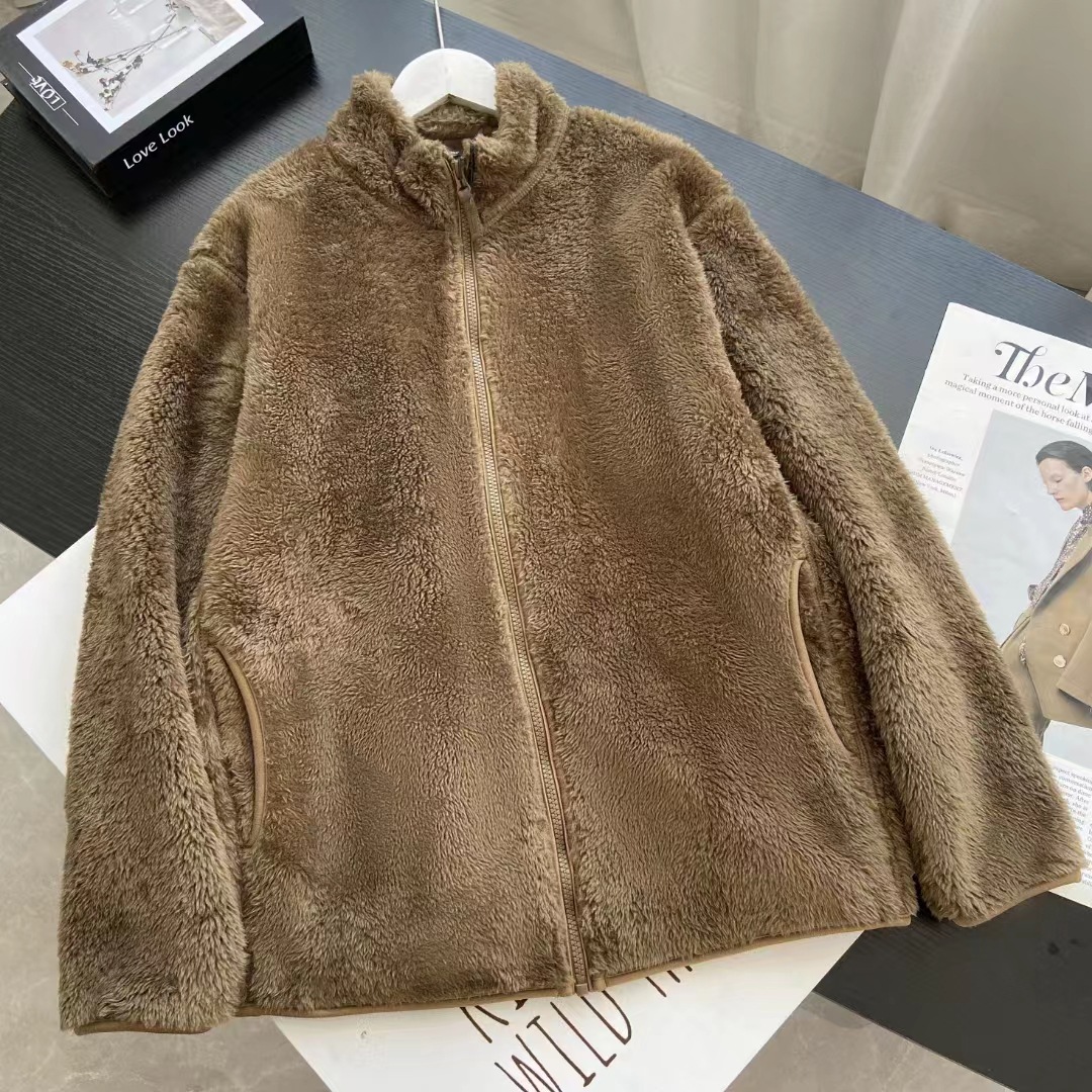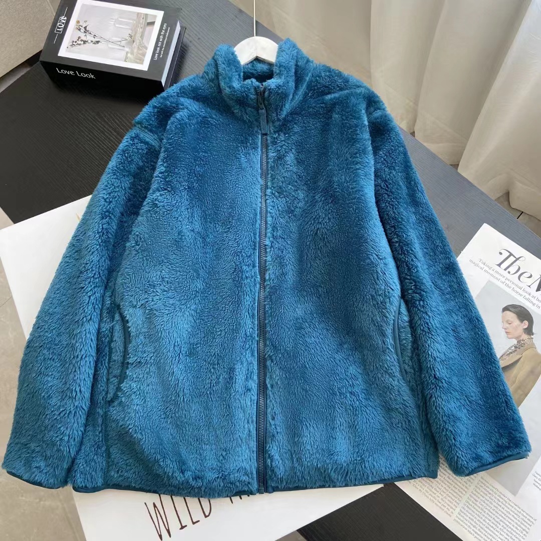 推奨金2024秋冬男女カップル金長パイルロックウールジッパージャケット立襟保温コート
