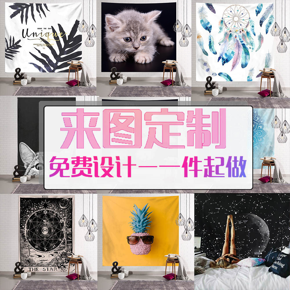 Ins北欧風寝室装飾タペストリー来図オーダーメードデジタルプリントネット赤直播背景布が対外貿易を好む