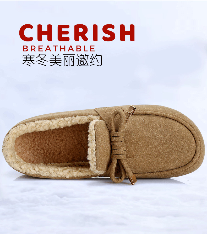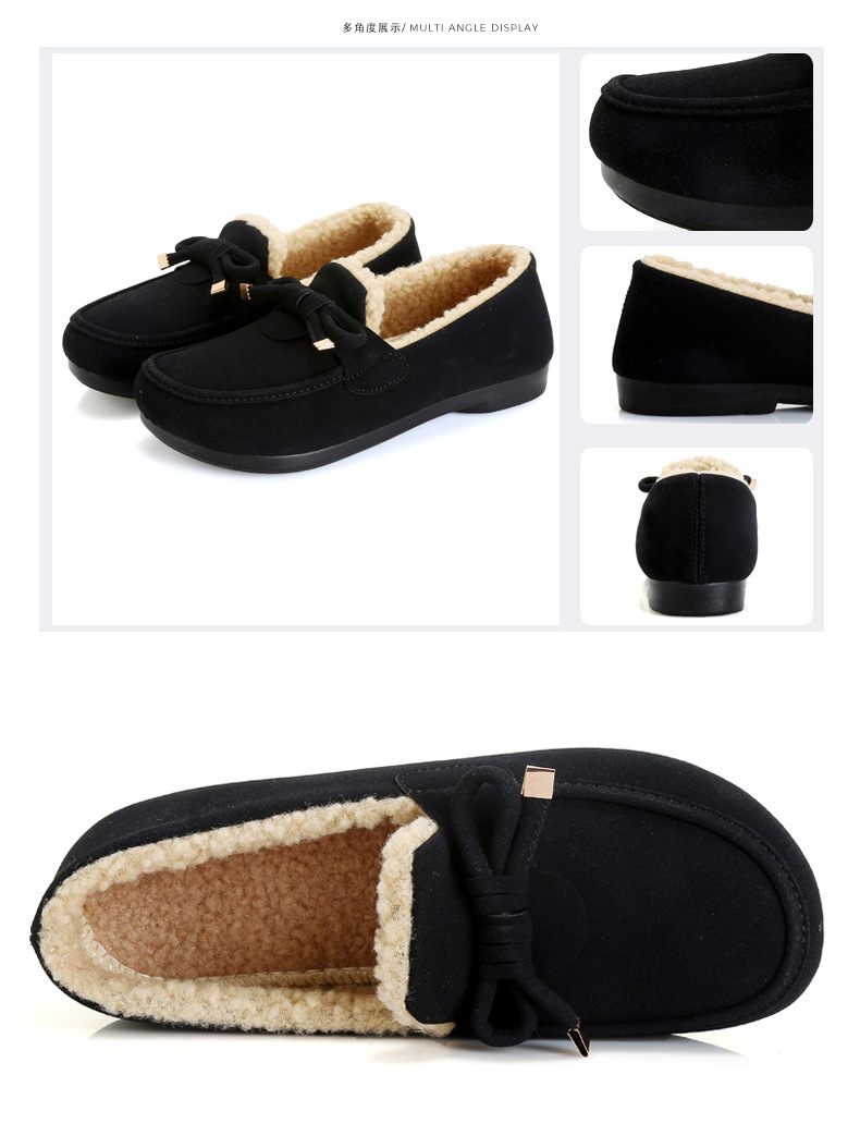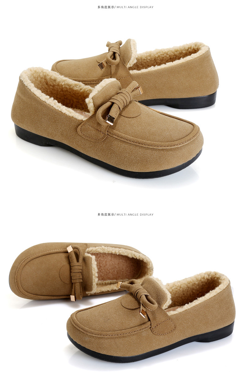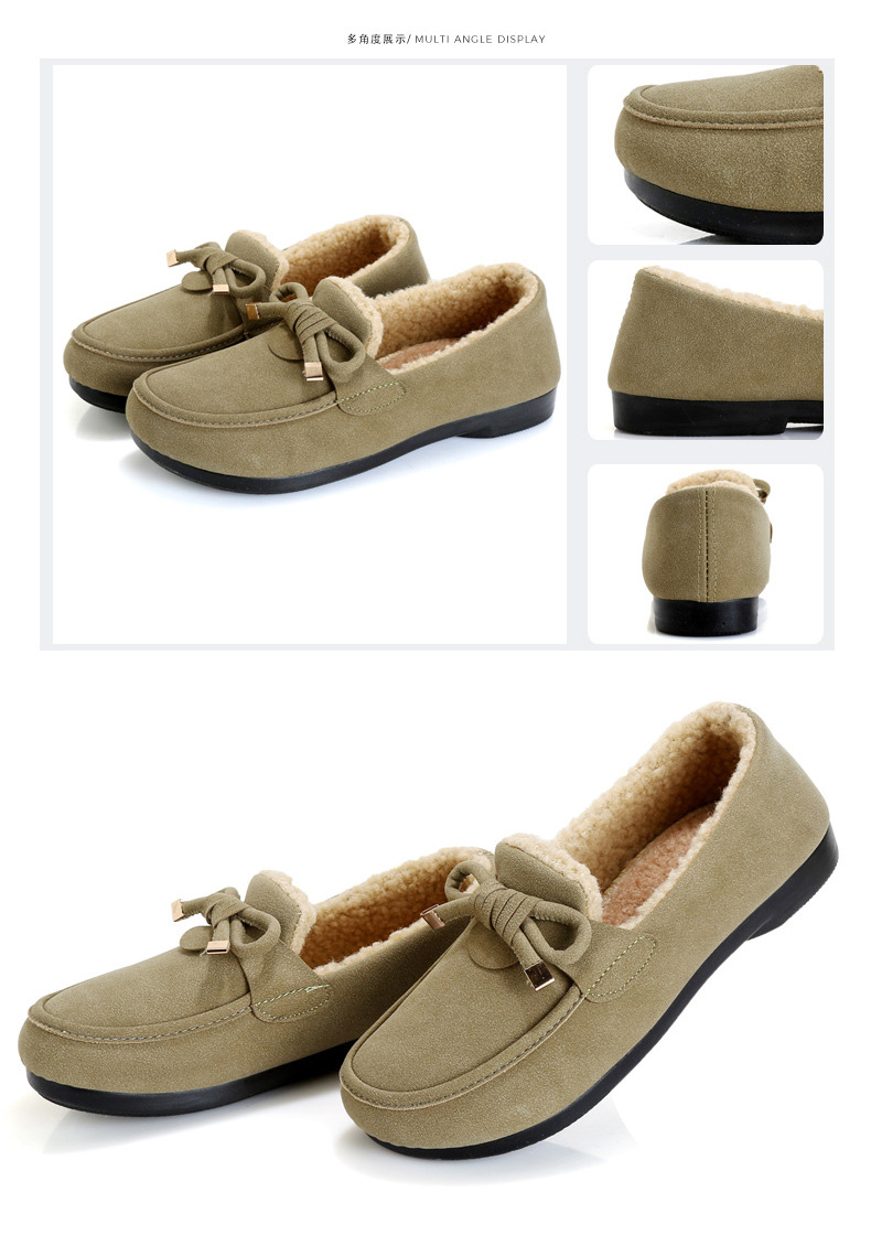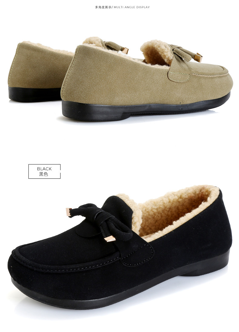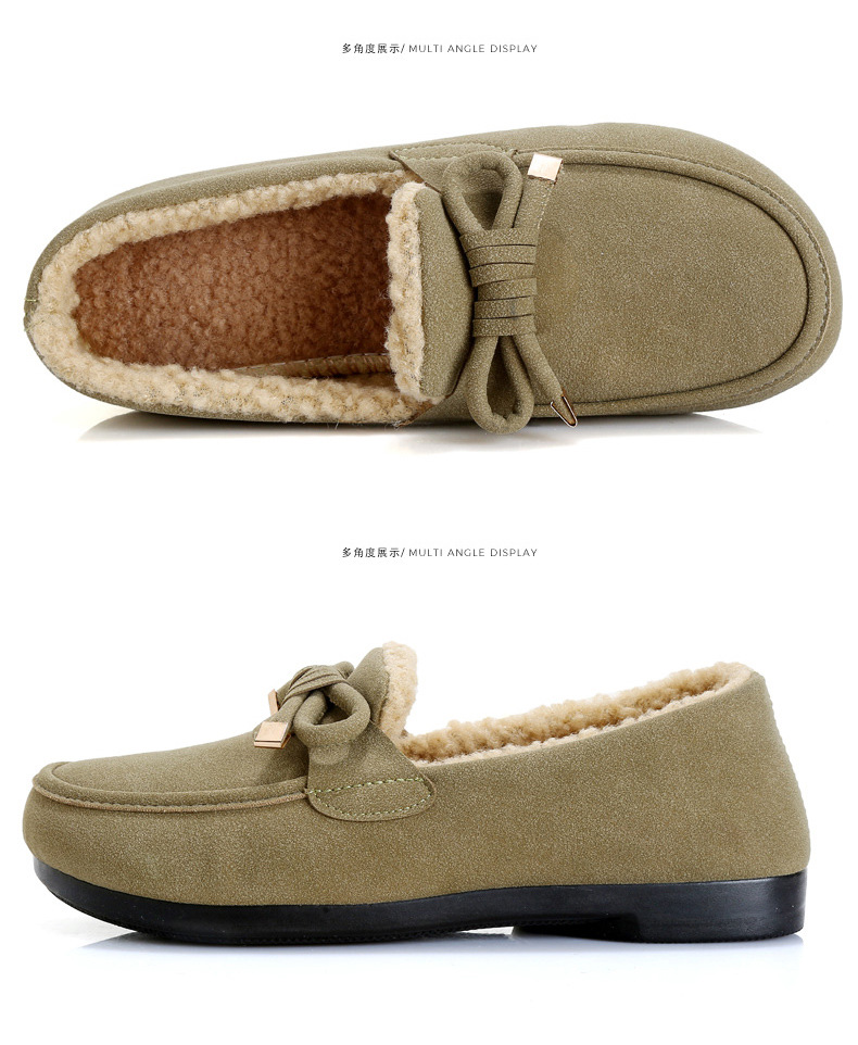 本当に柔らかい皮の子羊の毛の豆の靴の女性の柔らかい底の柔らかい面の綿の靴の女性の冬のベルベットの外で足を踏み入れる怠け者の靴の綿の靴