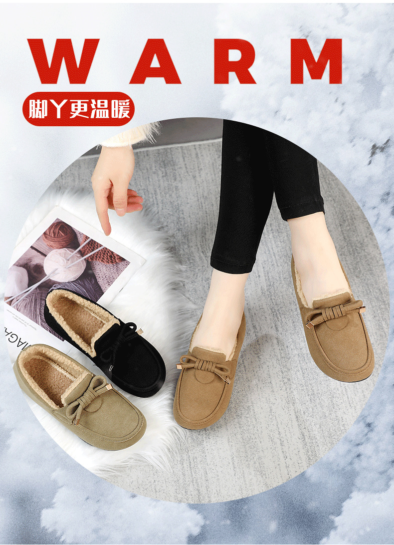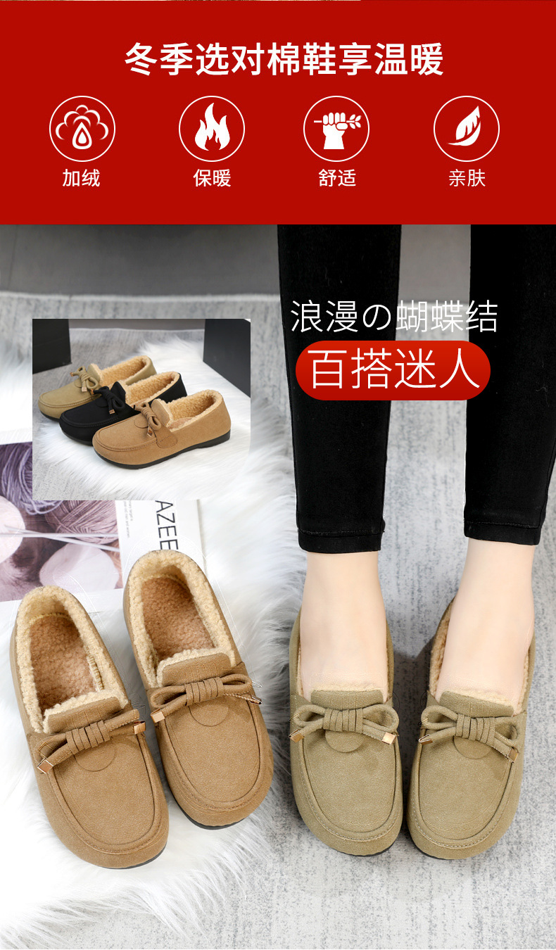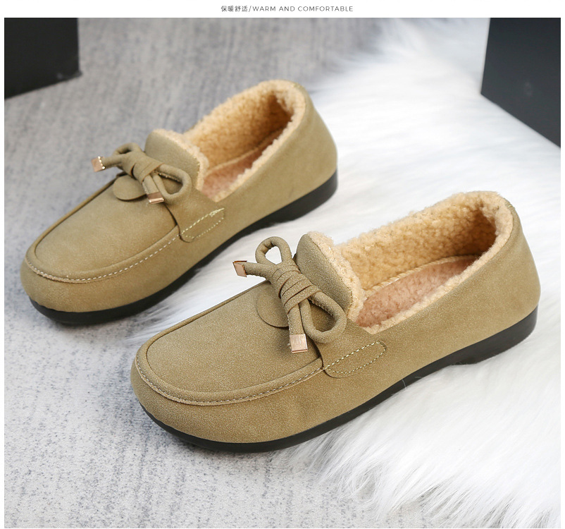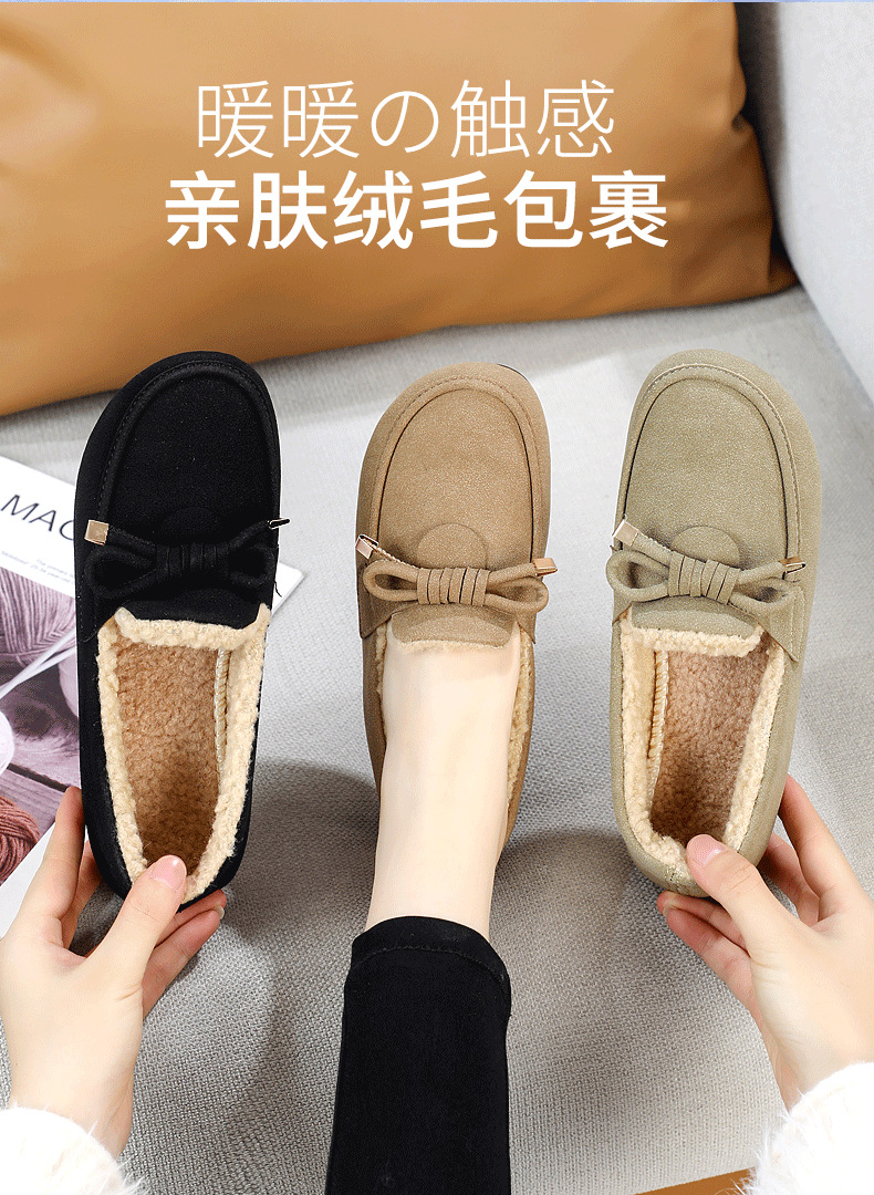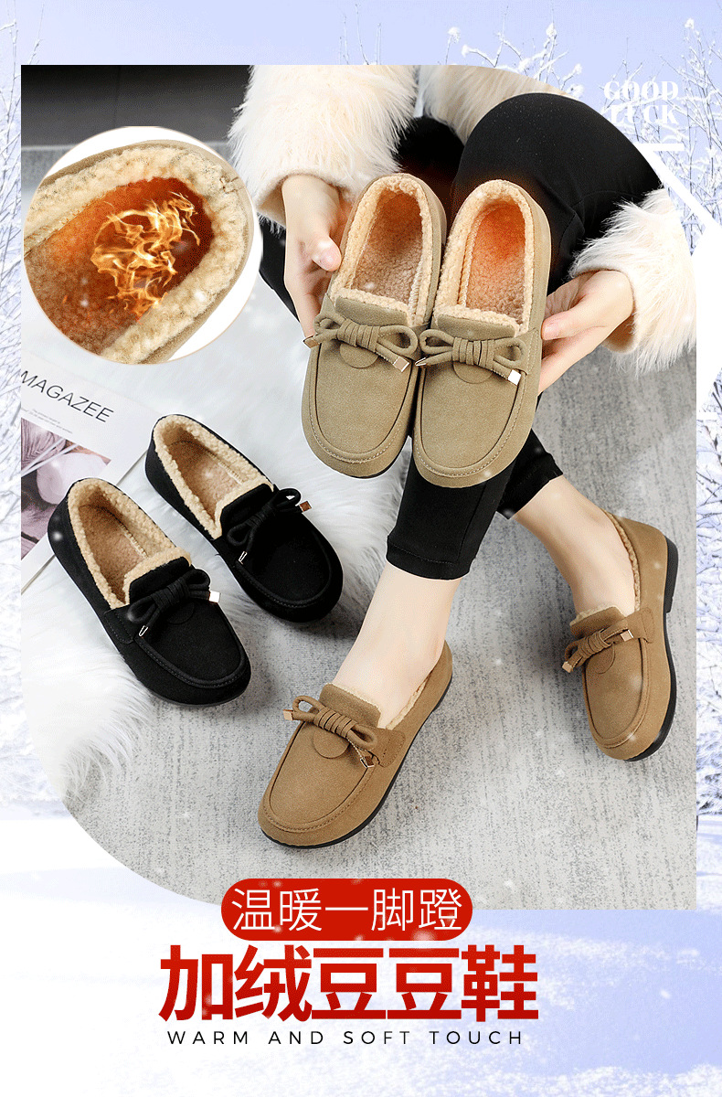 秋冬季新款豆豆鞋女加绒保暖休闲鞋平底懒人鞋毛毛鞋一脚蹬女棉鞋