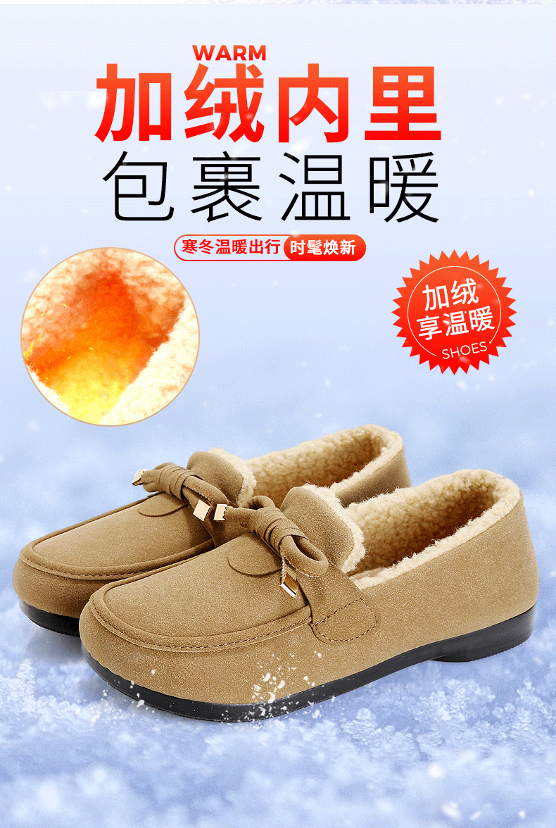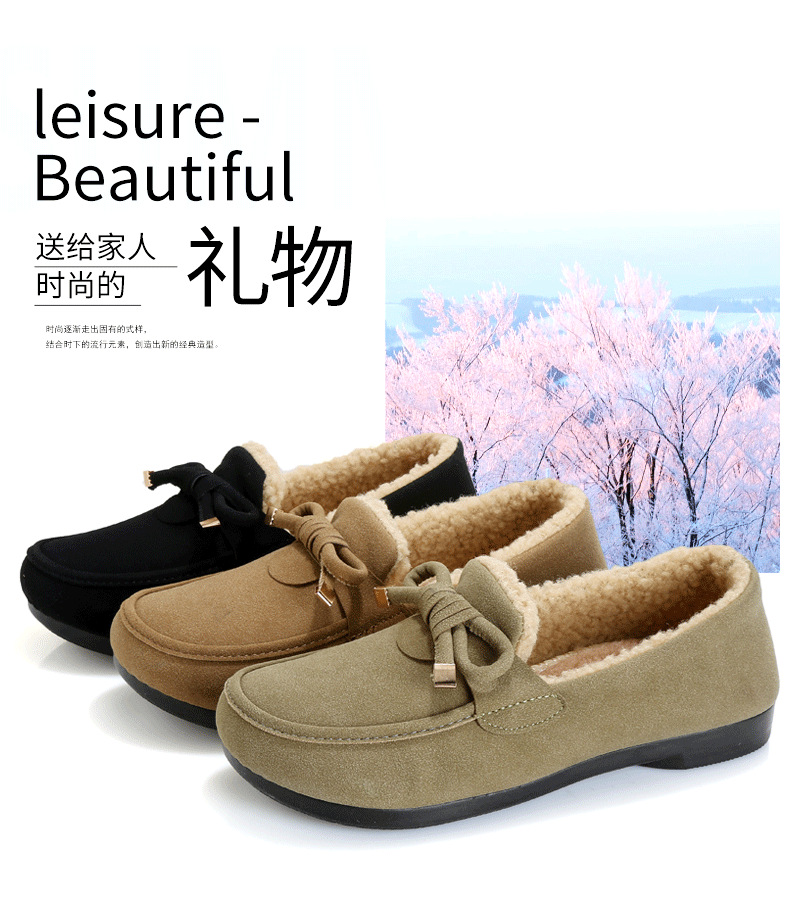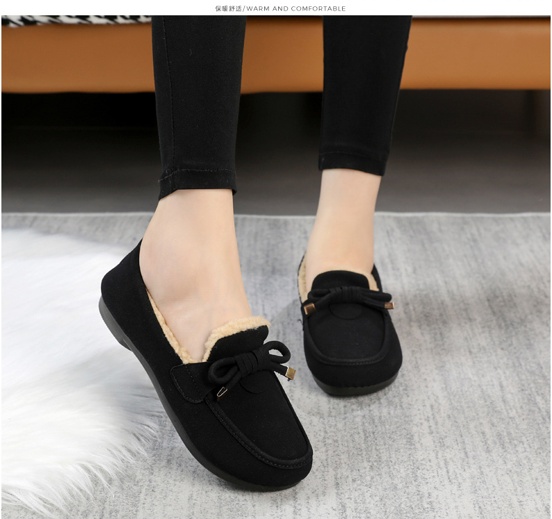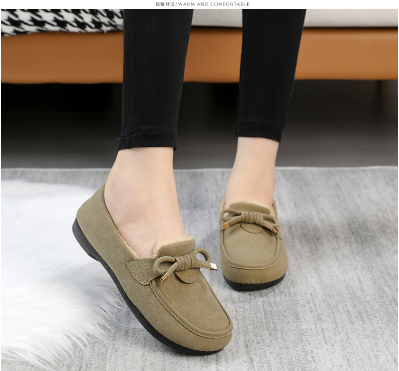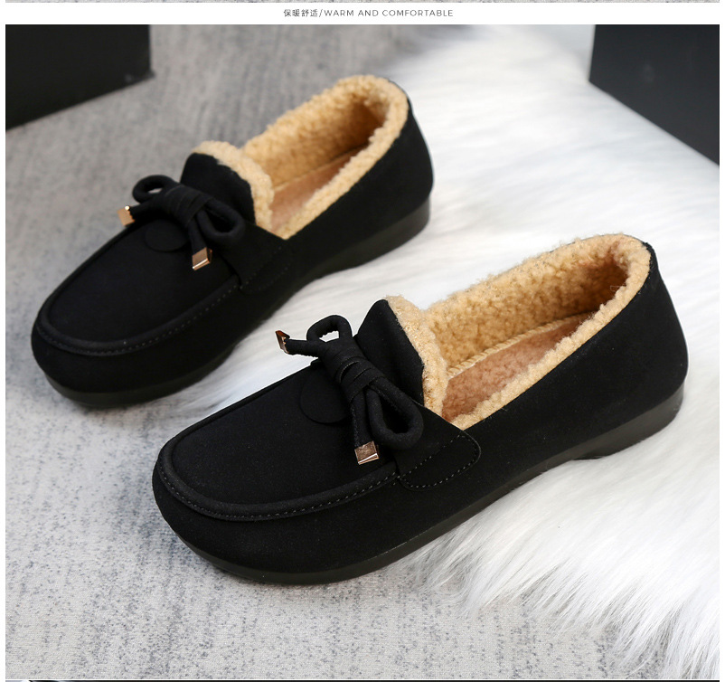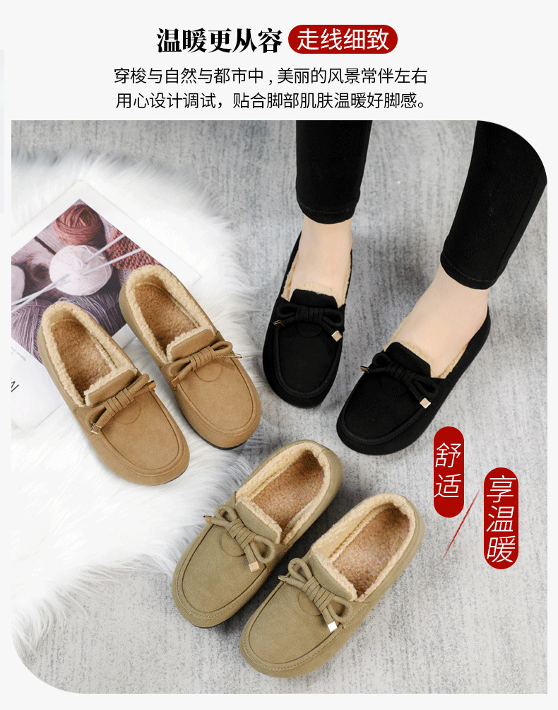 秋冬季新款豆豆鞋女加绒保暖休闲鞋平底懒人鞋毛毛鞋一脚蹬女棉鞋