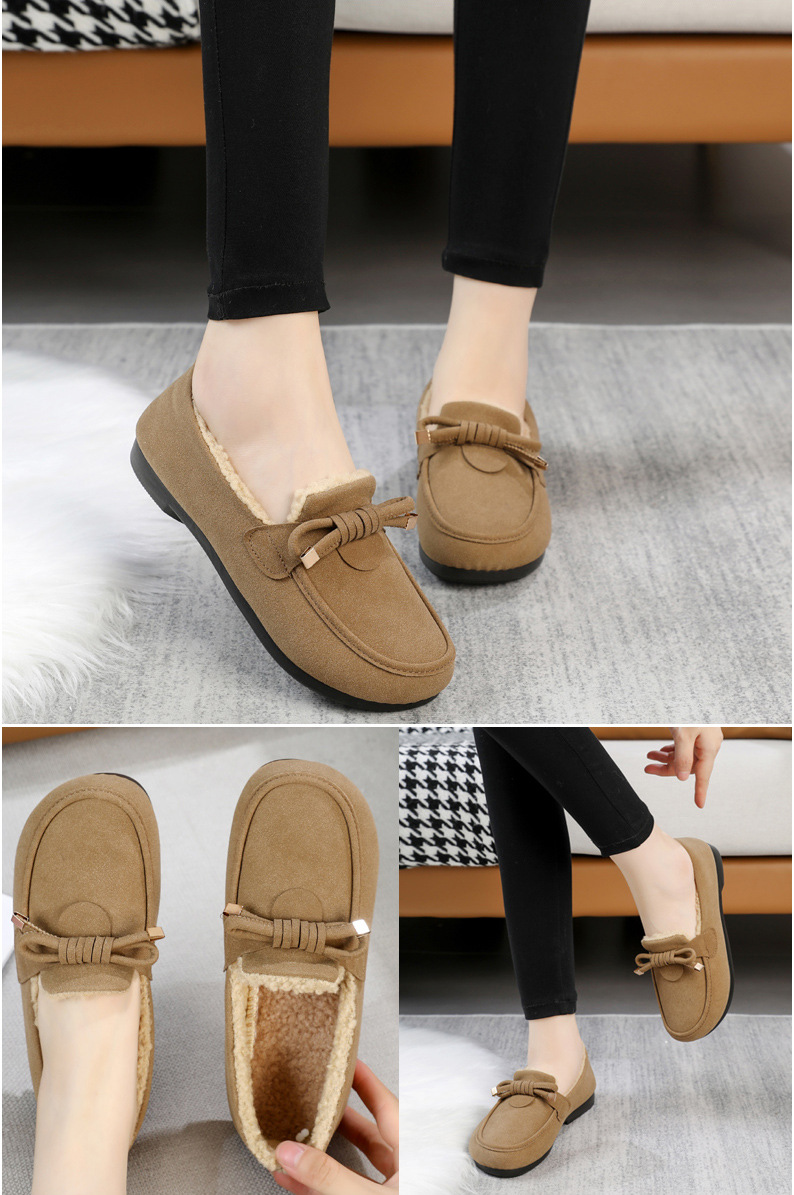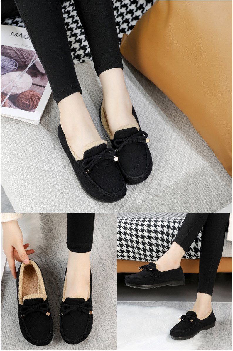 2025年秋冬用レディースコットンシューズ、豆豆シューズ、裏起毛で暖かいカジュアルシューズ、フラットスリッポン、レディーススリッポン、トレンドシューズ