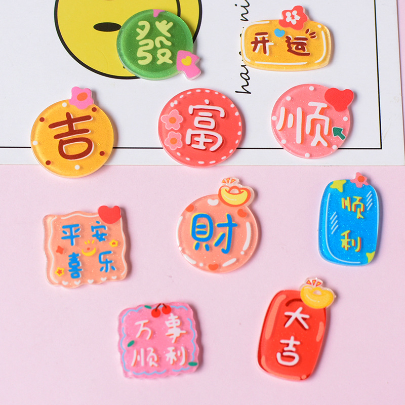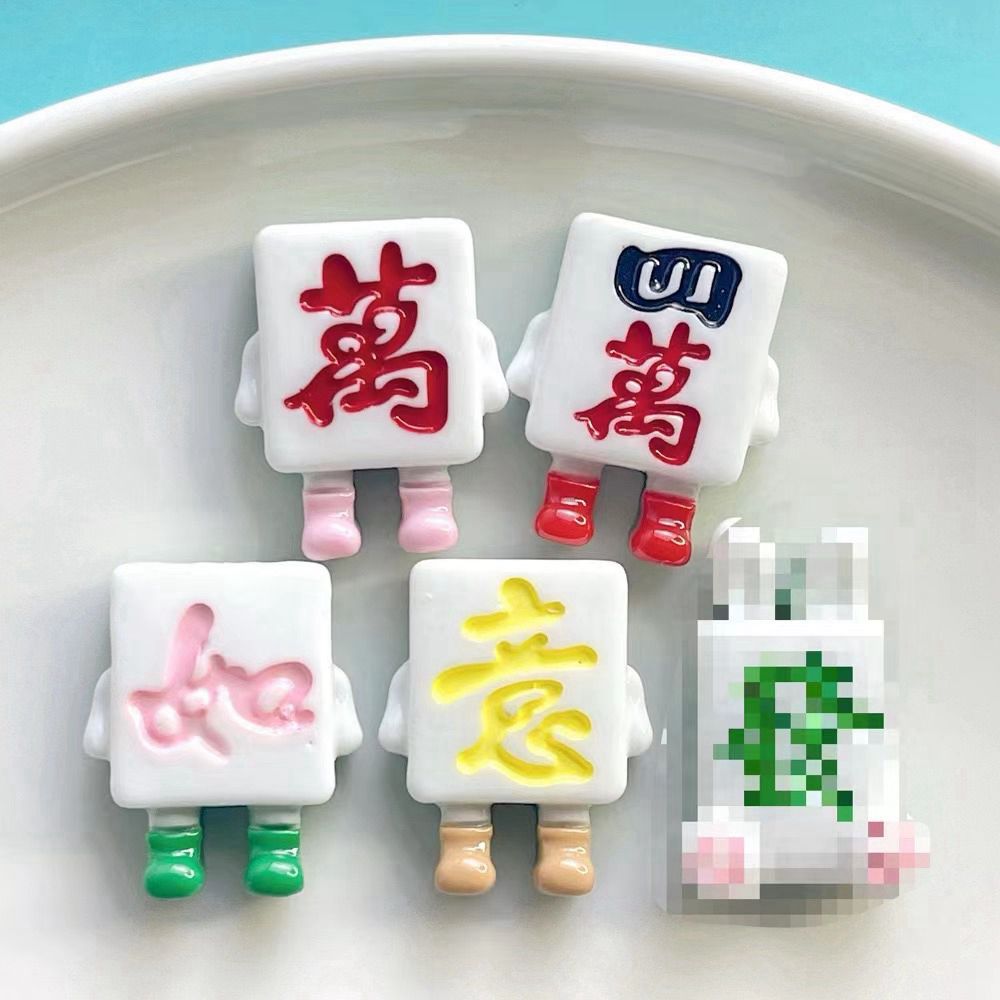 漫画万事如意髪マージャン樹脂部品創意diyヘアクリップ鍵チェーン水杯靴ボタン卸売り材料