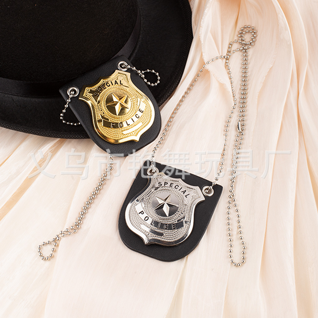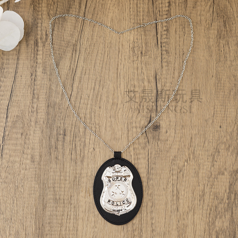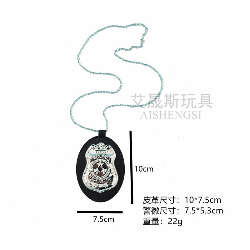 尺寸:链条长度75cm,皮革长度:10*7.5cm,中间警徽尺寸:7.5*5.3cm,