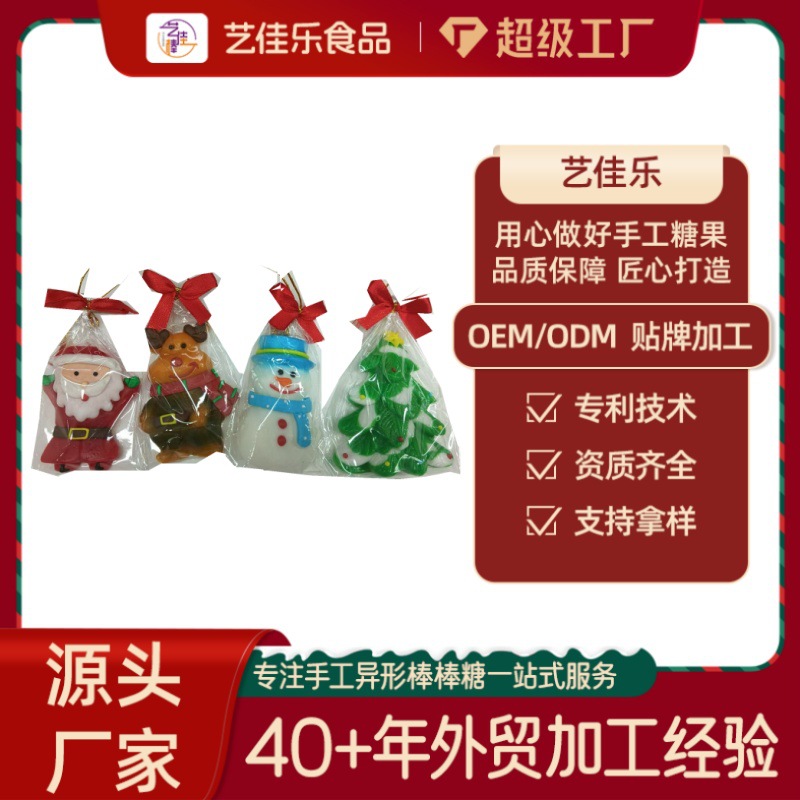 サンタクロースのマルチフレーバー子供用フルーツハードキャンディー、クリスマスツリー、かわいい漫画の形をしたロリポップスナック、輸出用