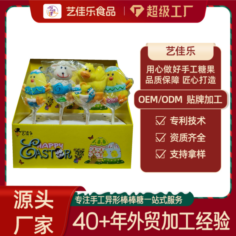 カスタマイズされたイースターマルチフレーバー子供用フルーツハードキャンディーかわいいひよこ漫画の形のロリポップキャンディー
